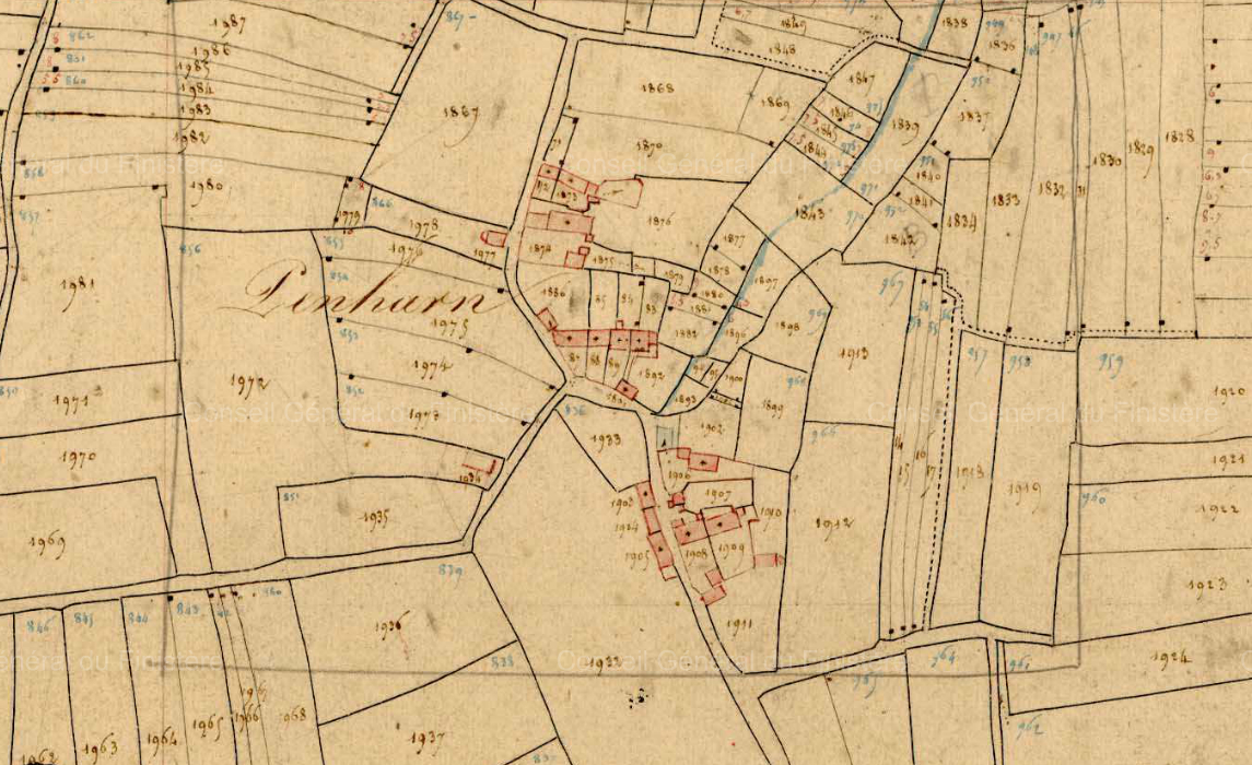 Village de Penharn, cadastre ancien de la commune de Cléden-Cap-Sizun, 1837.Immatriculation
