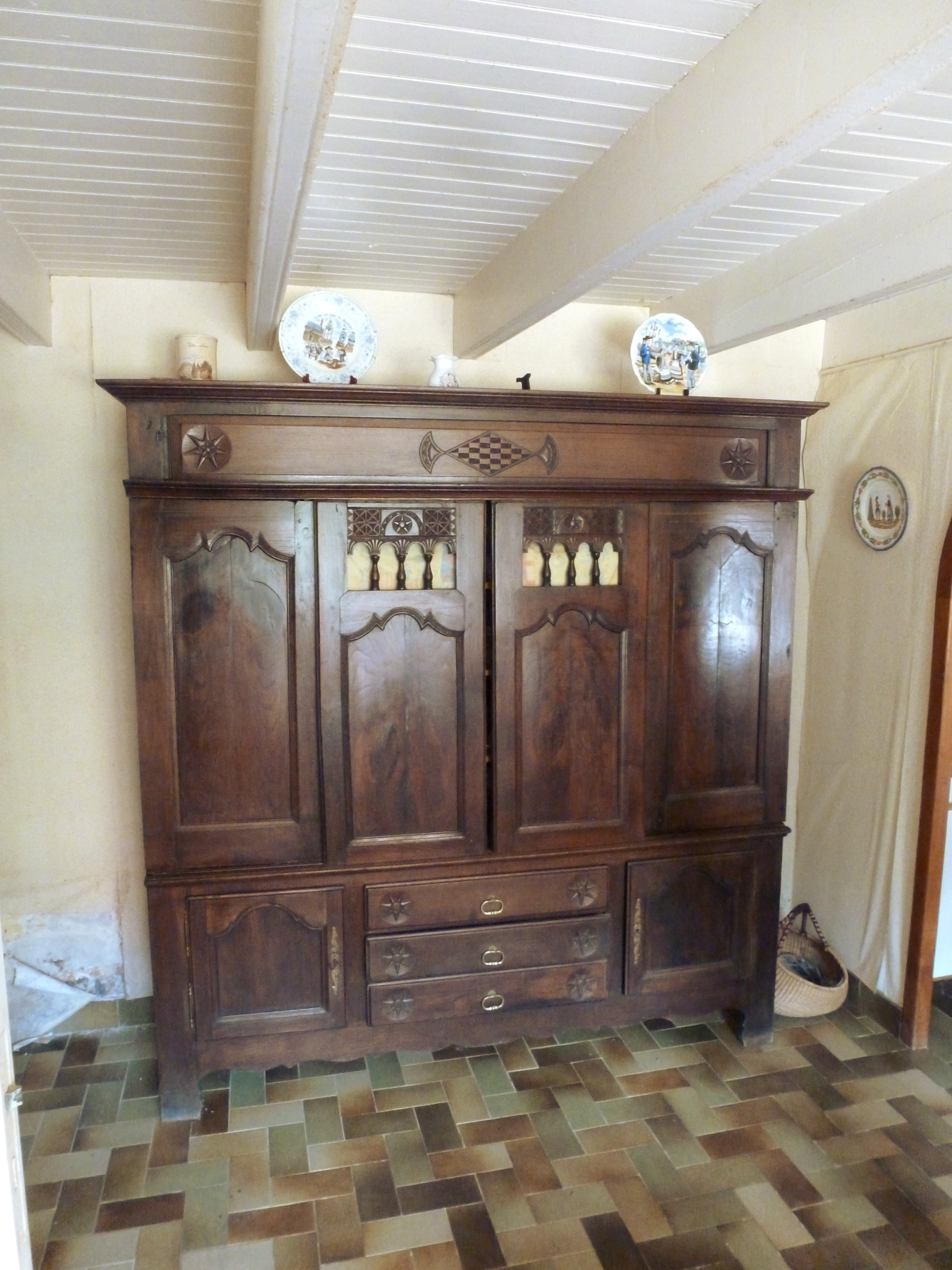 Lit-clos transformé en petite armoire, vue générale.Immatriculation