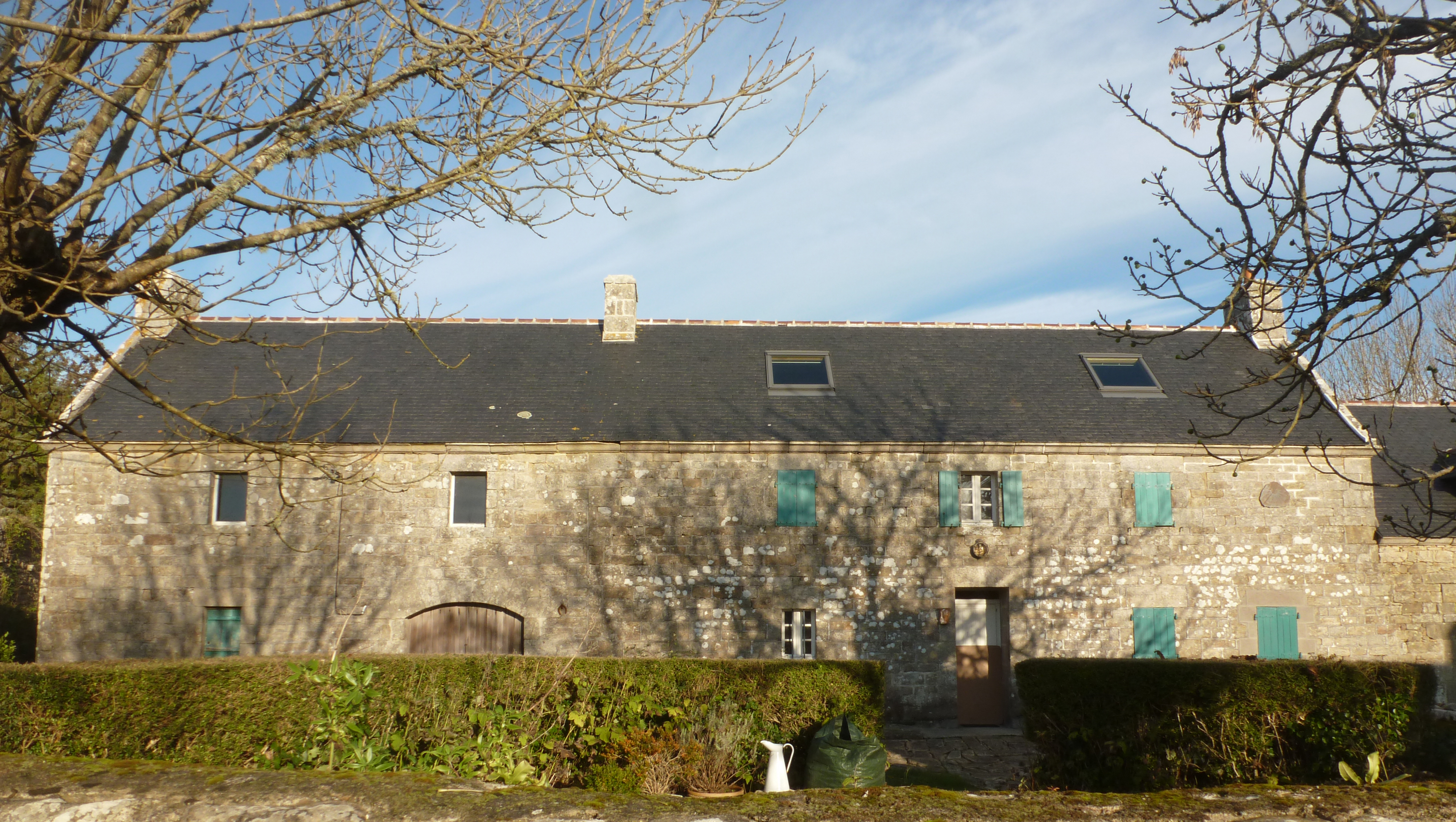 Ferme 3, élévation antérieure de l'alignement principal : logis daté 1832 et grange à porte charretière. (2018)Immatriculation