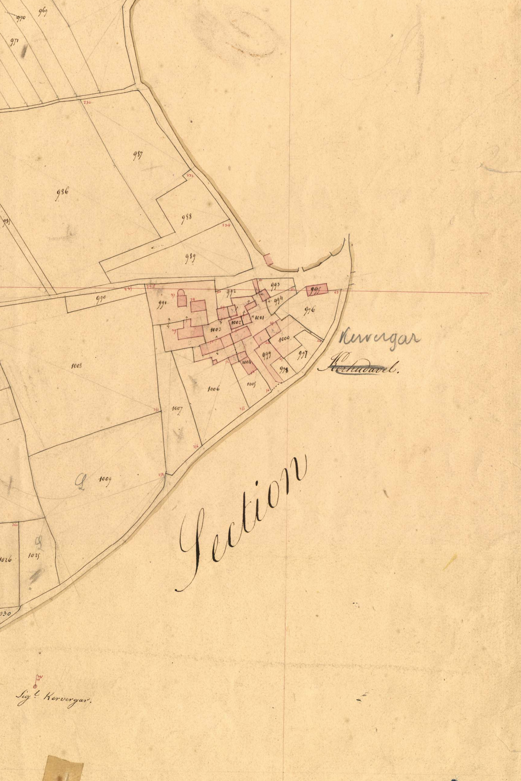 Village de Kervergar, partie sud-ouest, cadastre ancien de la commune de Plogoff, 1837.Immatriculation