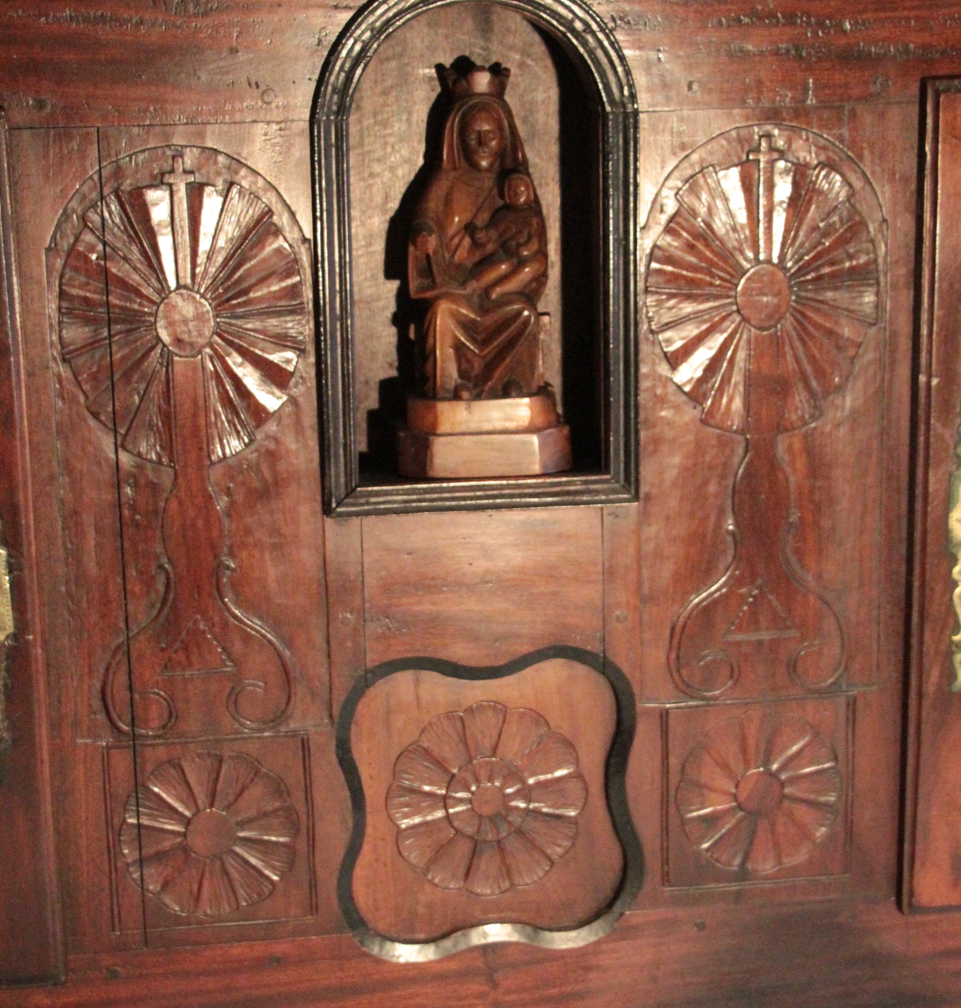 Drustuilh 35, détails de la niche à Vierge et des ostensoirs. (2018)Immatriculation
