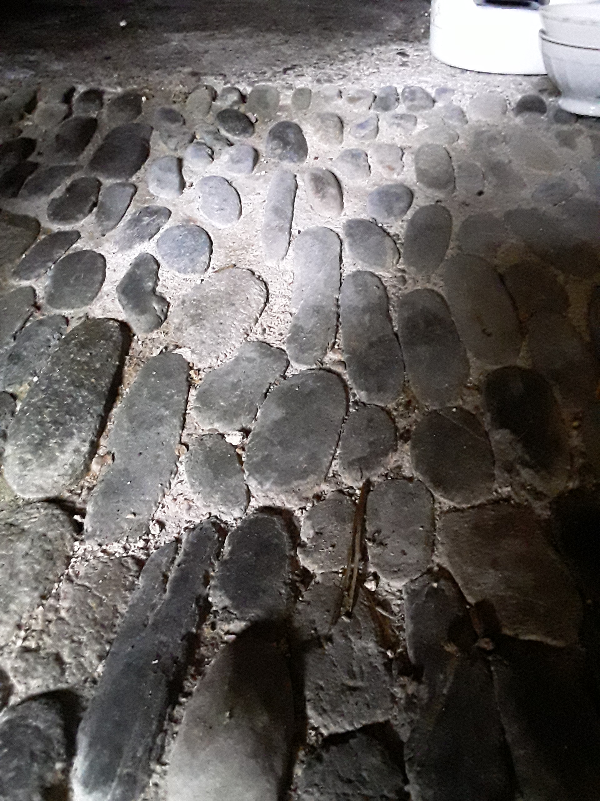 Sol de l'écurie en galets posés sur champ.Immatriculation