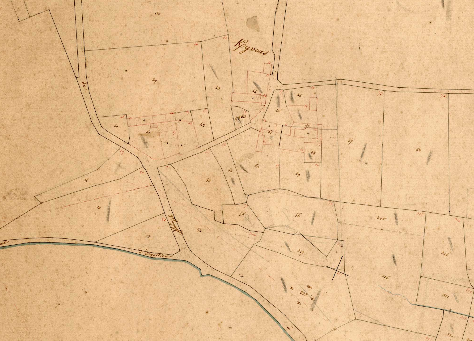 Village de Kerivoas, cadastre ancien de la commune d'Audierne, 1837.Immatriculation