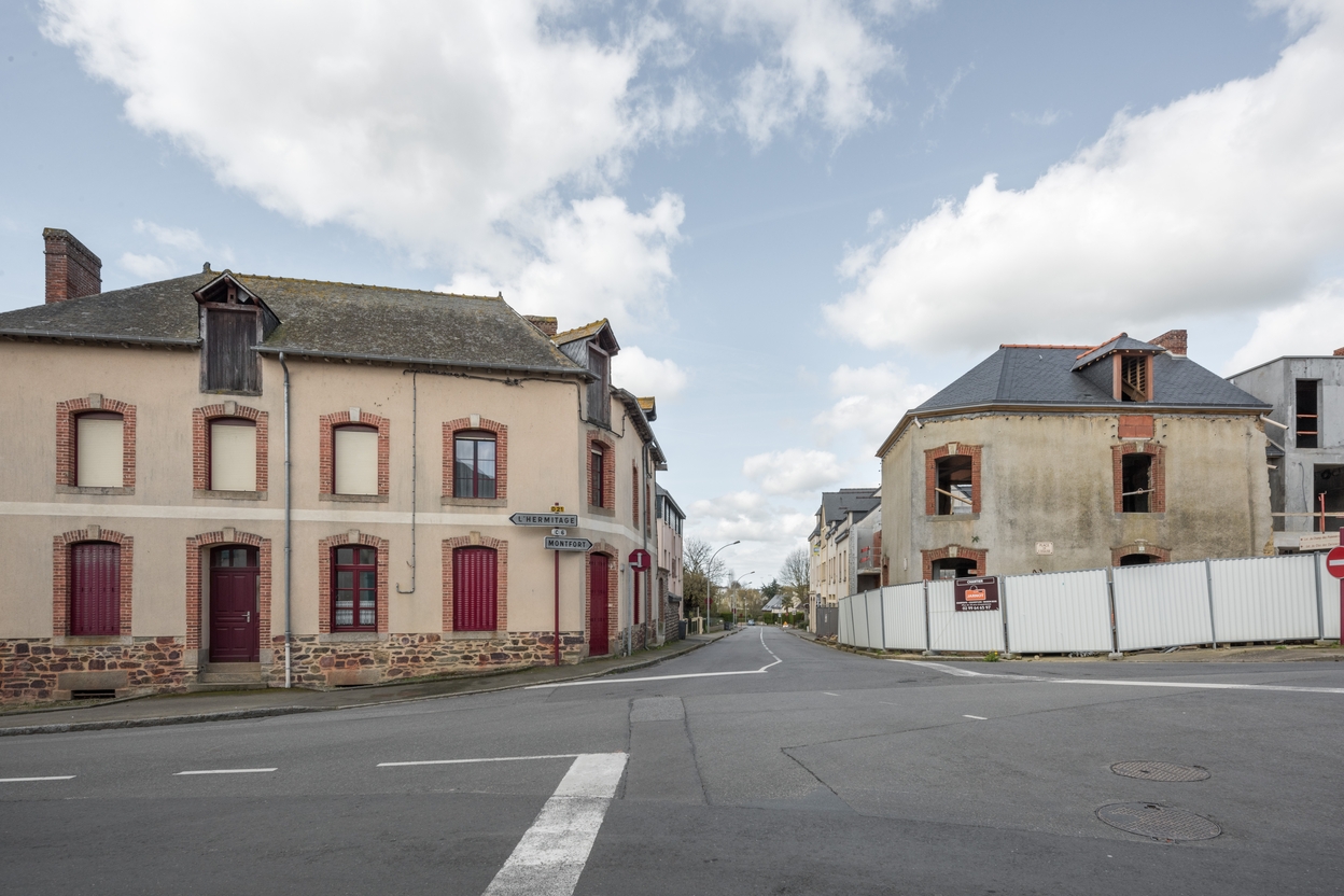 Vue du carrefour de l'église vers la rue de Montfort à l'estImmatriculation