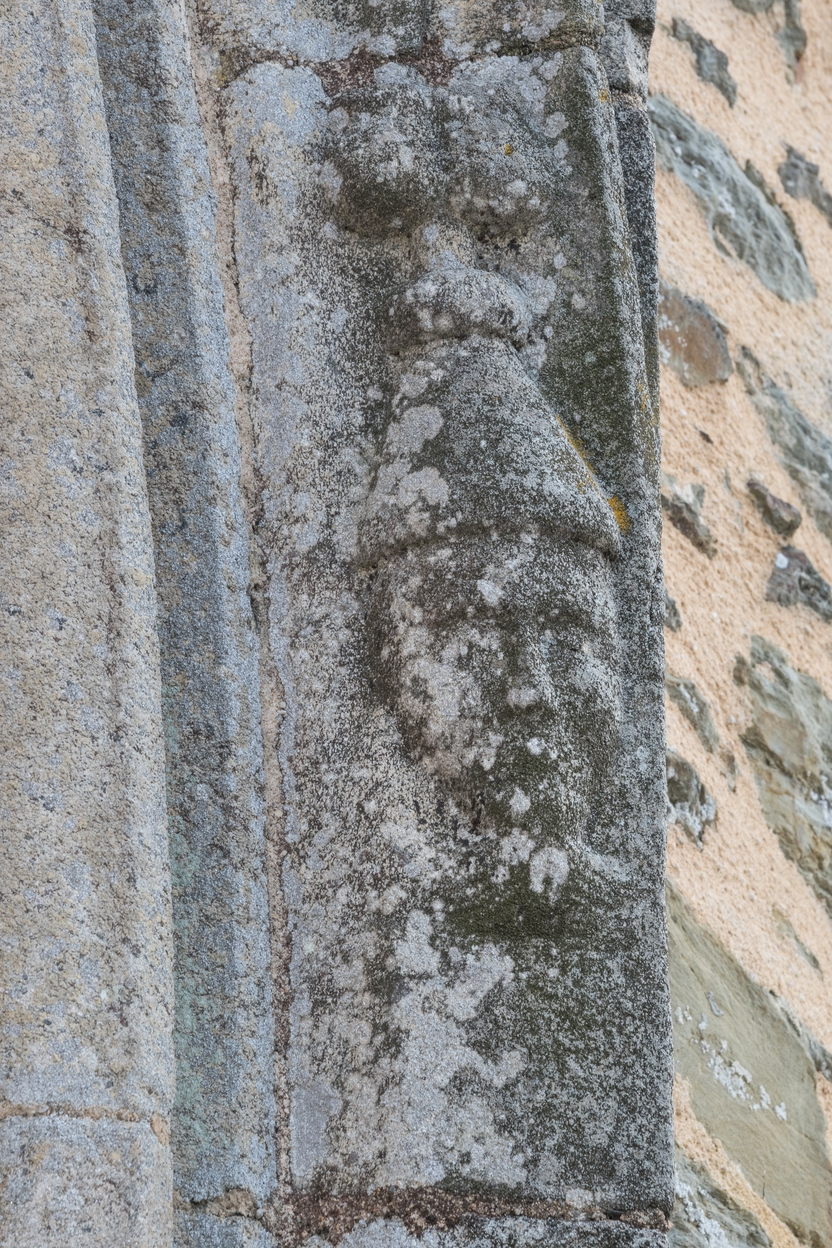 Visage sculpté dans la voussure du portail occidentalImmatriculation