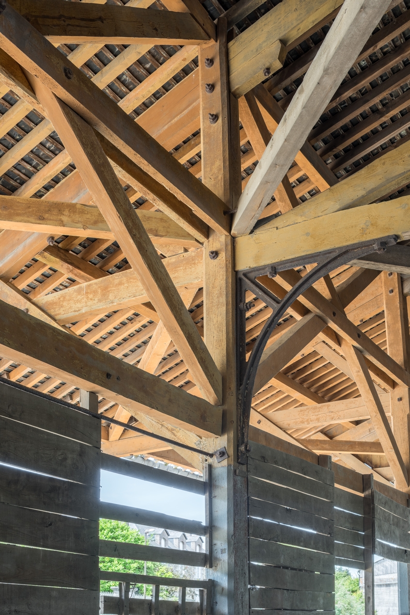 Assemblage de charpente, façade ouest, ouvert sur l'auvent en porte-à-fauxImmatriculation