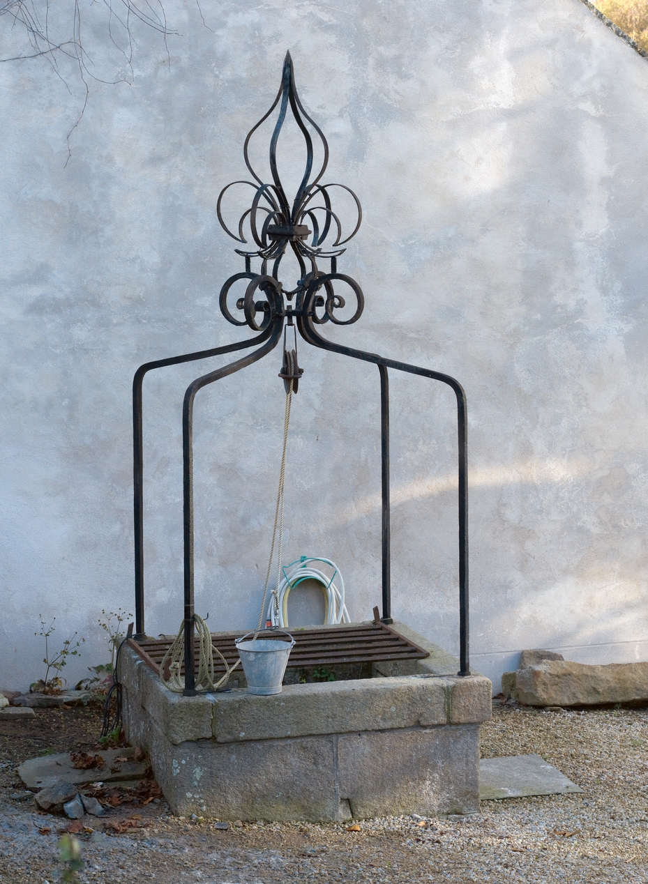 Puits dans la cour avec potence en ferronerieImmatriculation