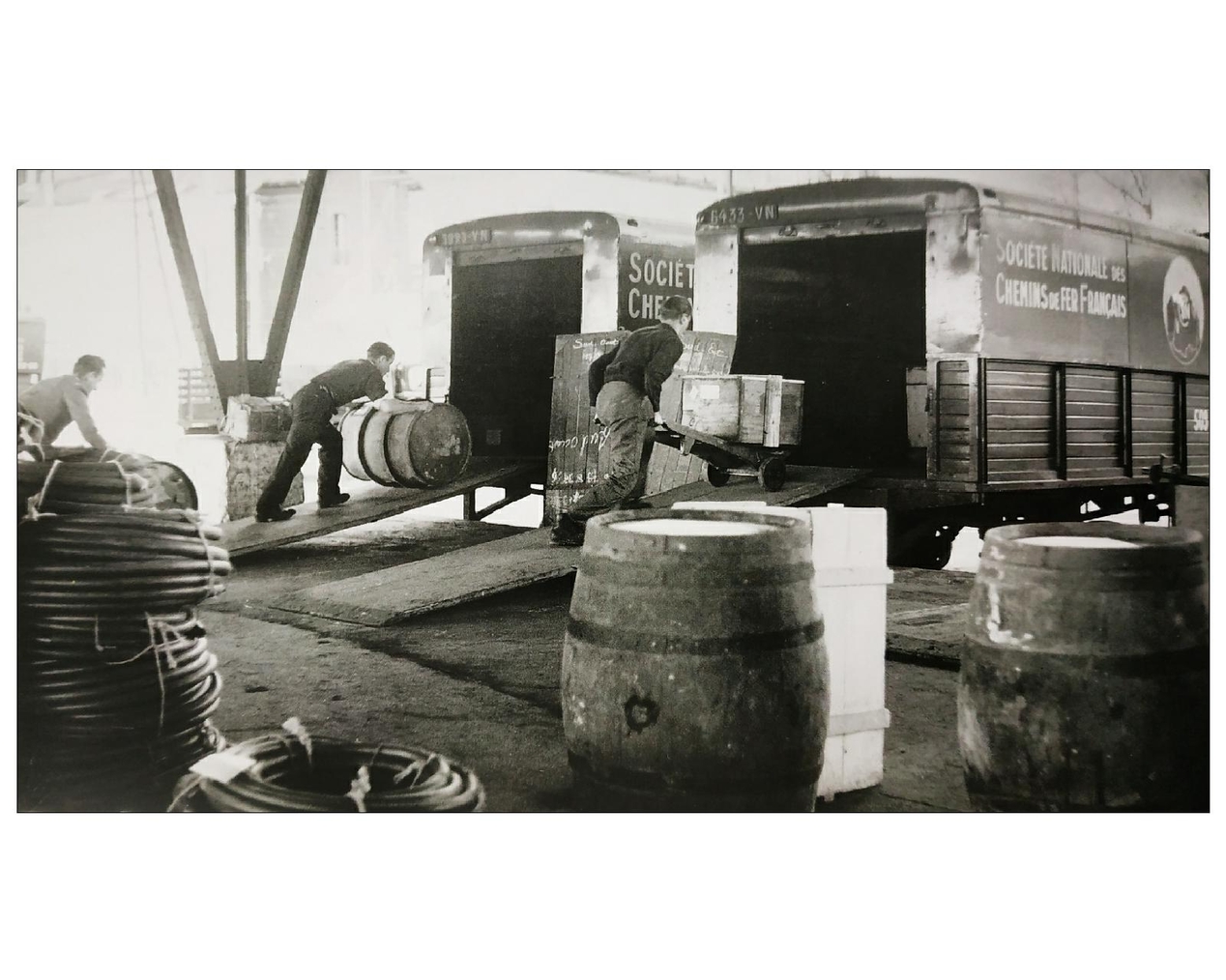 Gare Région parisienne - Chargement semi-remorques - Auteur : Félix Fénino ("Images de trains - Tome IV - La vie du Rail")Immatriculation