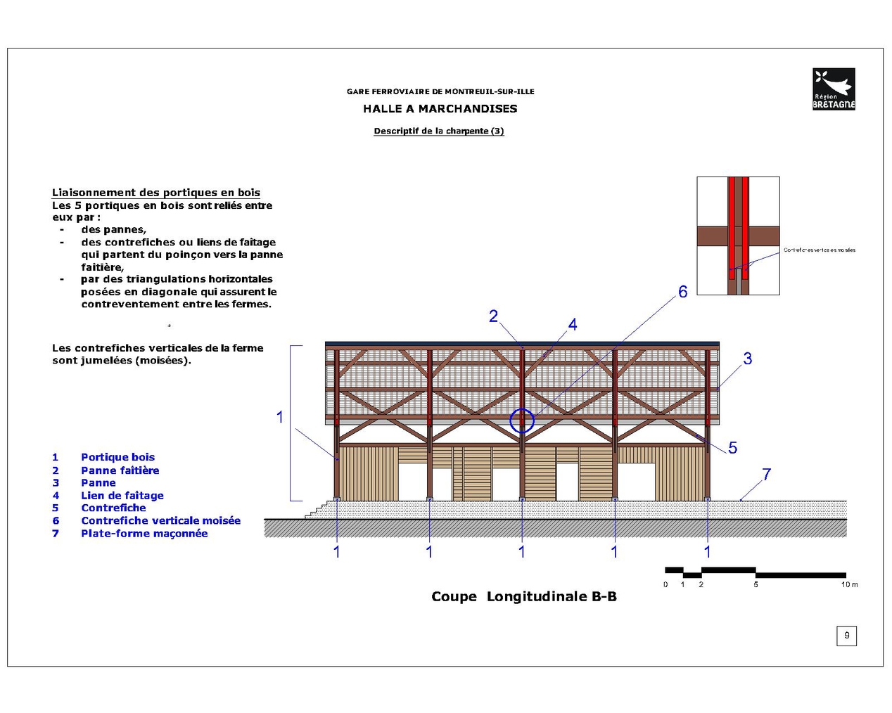 Hall à marchandises, descriptif de la charpente : coupe longitudinale B-BImmatriculation
