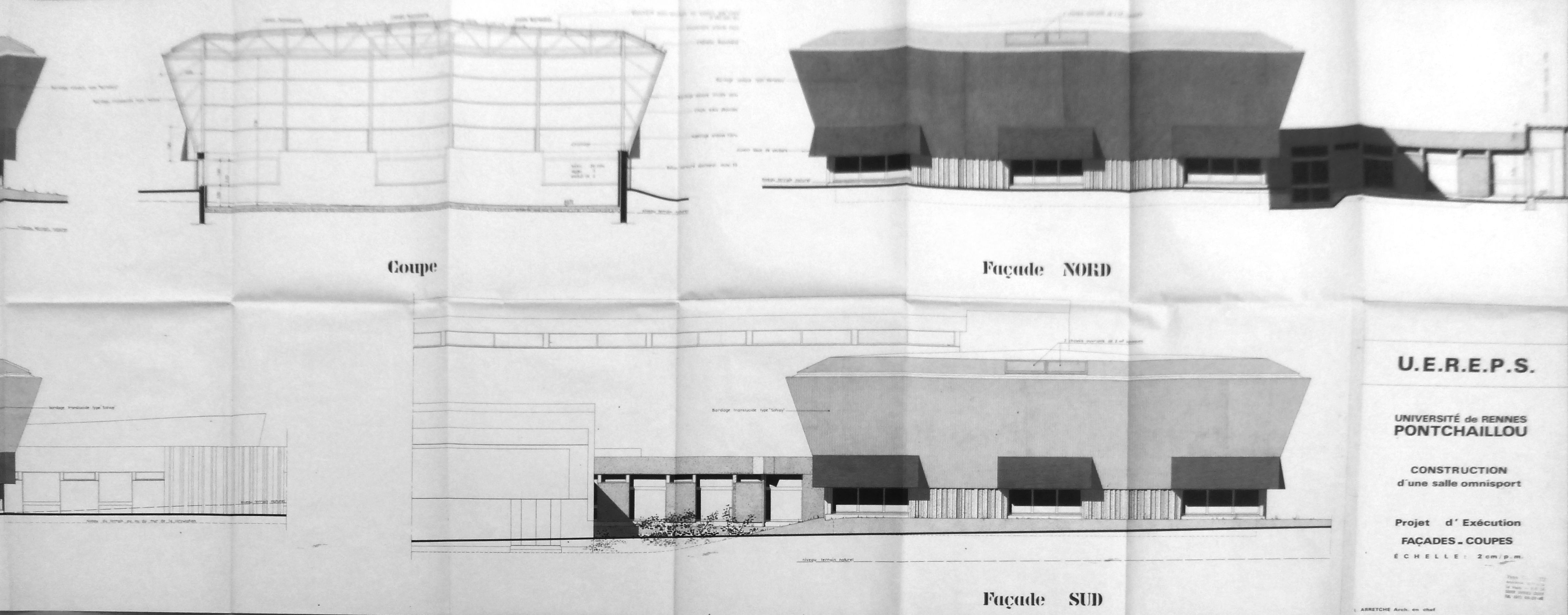 AD Ille-et-Vilaine : 1242 W 123. Façades-coupes. L. Arretche & Y. Guillou, 1976.