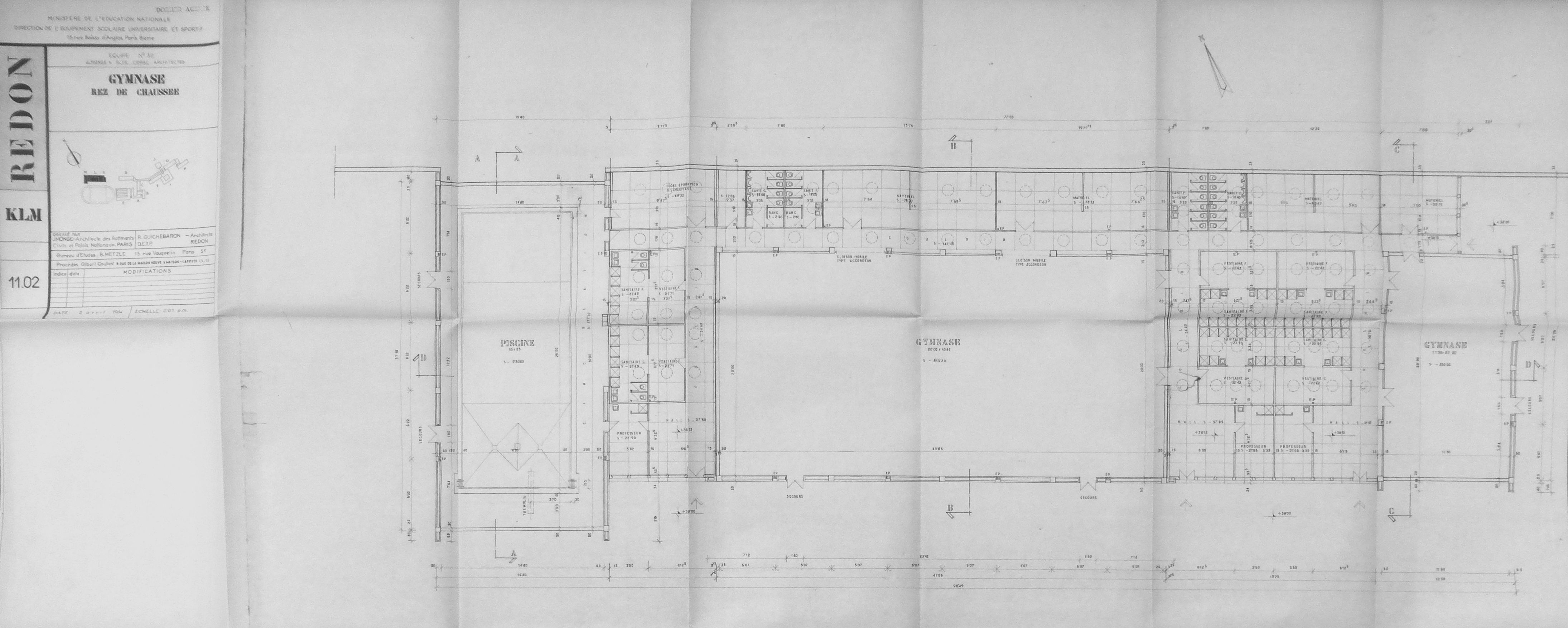 AD Ille-et-Vilaine : 152 W 172. Plan rez-de-chaussée. J. Monge & R. Guichebaron, 1964.