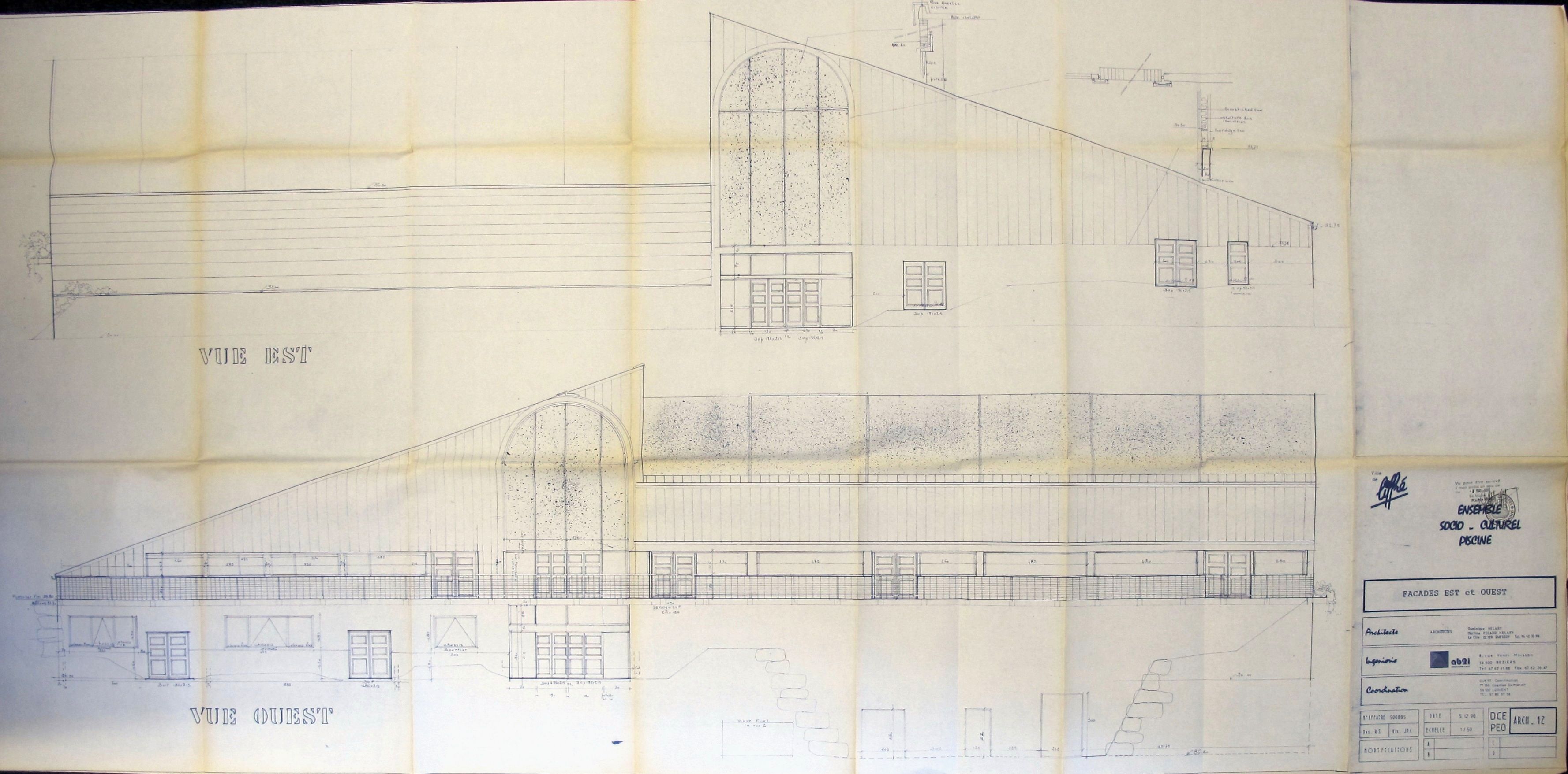 AC Liffré : PC n° 3515291Z0009. Façades est et ouest. D. Hélary & M. Picard-Hélary, 1990.