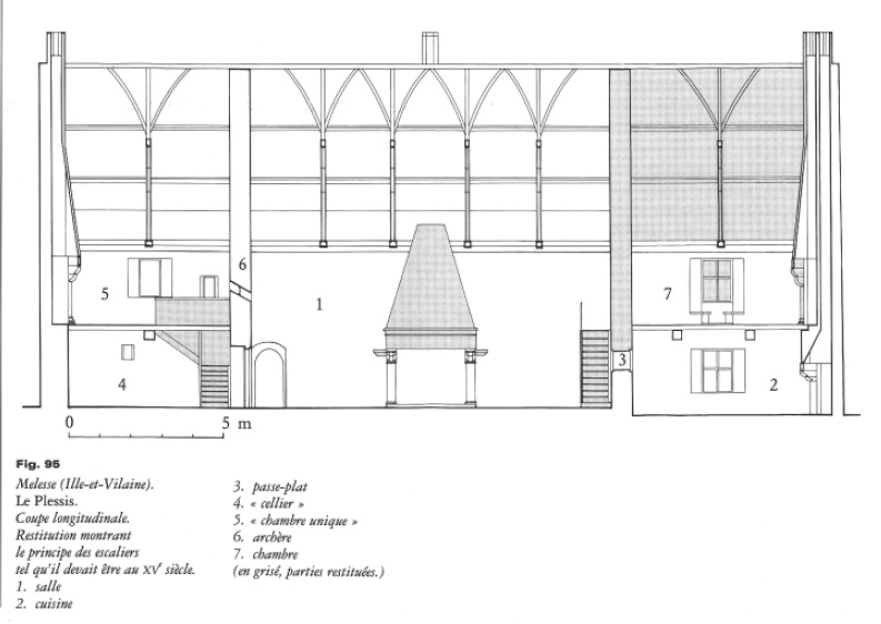 Coupe longitudinale du manoir du Plessis à Melesse : exemple de manoir à salle basse comme pouvait l'être l'ancien manoir de La Porte, p. 116Immatriculation