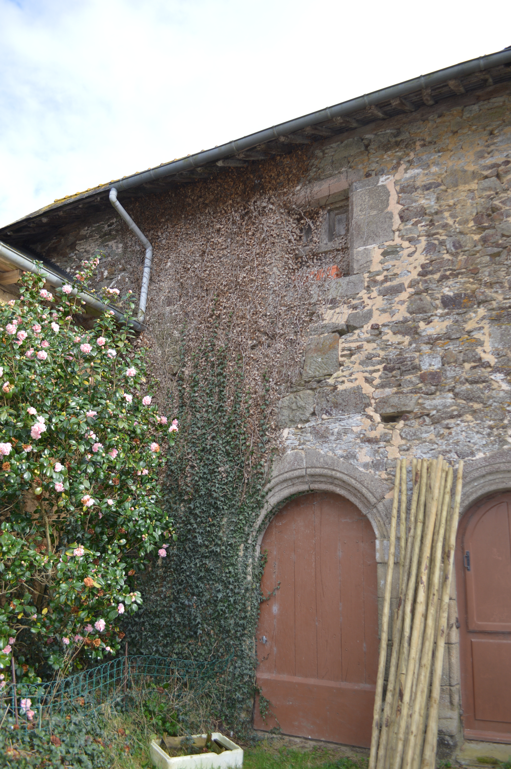 Détails des portes en granit mouluré et de la menuiserie sans châssis vitré et fermé par des volets en bois intérieursImmatriculation