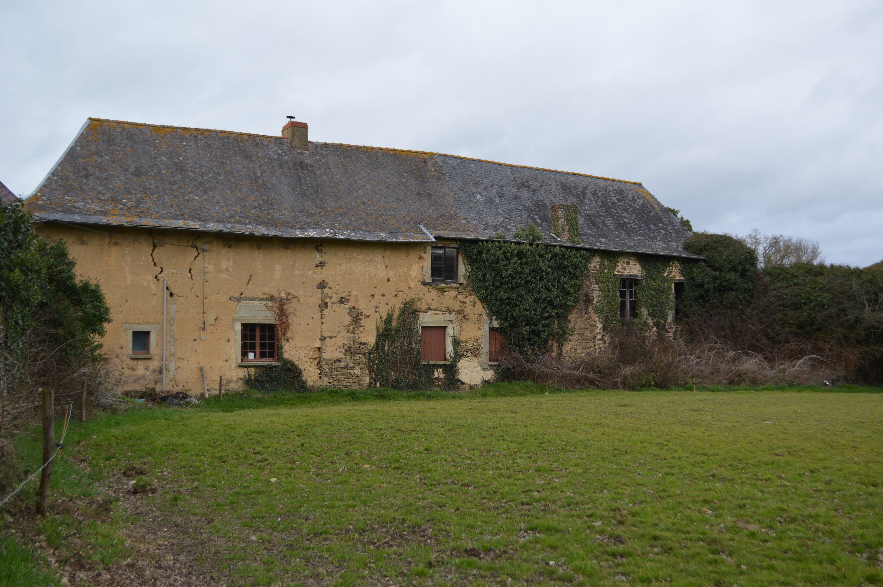 Façade arrière du manoir avec la souche de cheminée sur le mur gouttereauImmatriculation