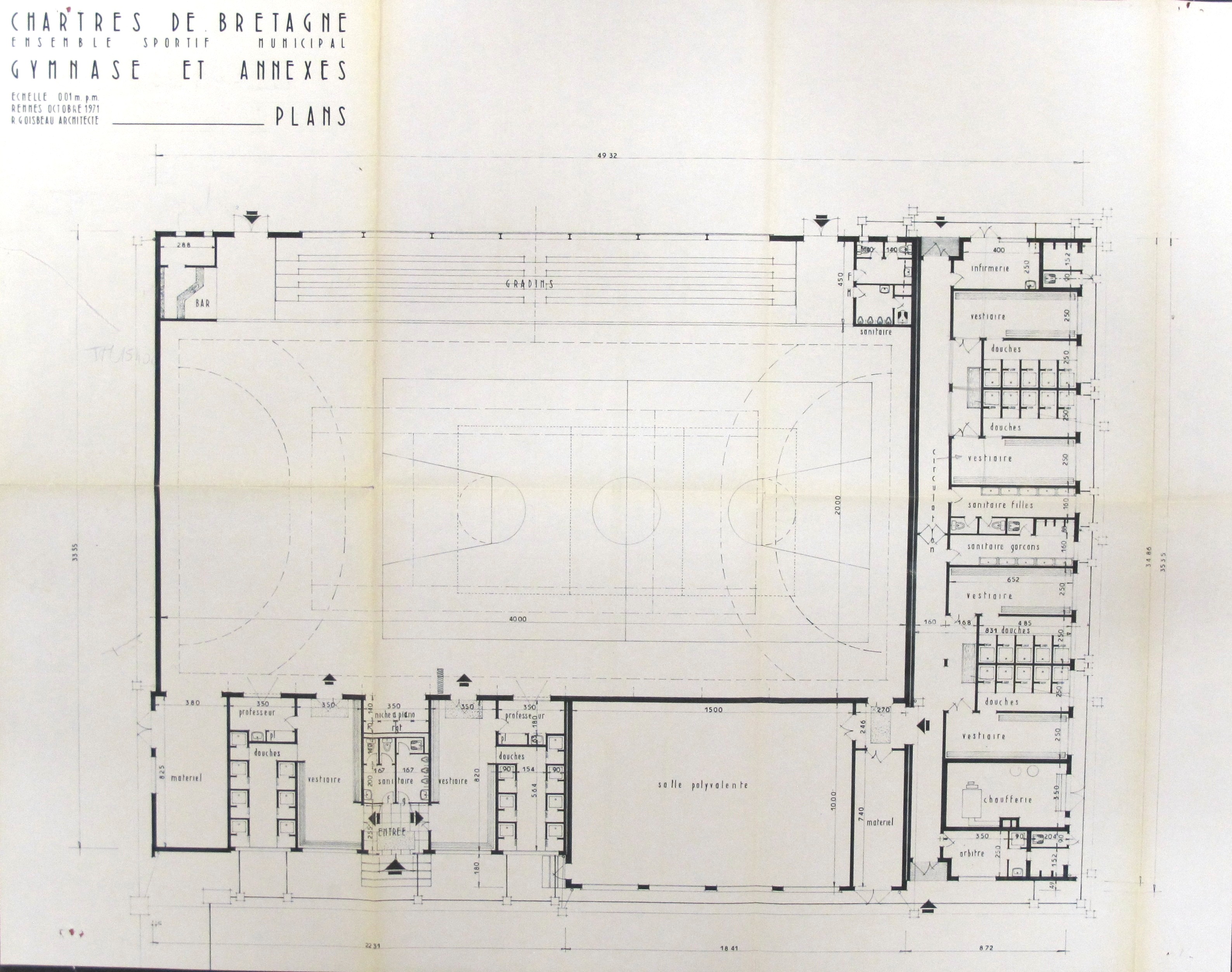 AC Chartres-de-Bretagne : 3 W 78. Plan du gymnase. R. Goisbeau, 1971.