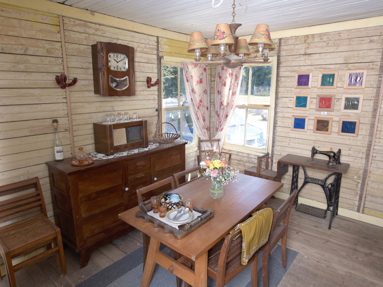 Baraque canadienne : Salle à manger. Les meubles sont dessinés par René Gabriel.Immatriculation