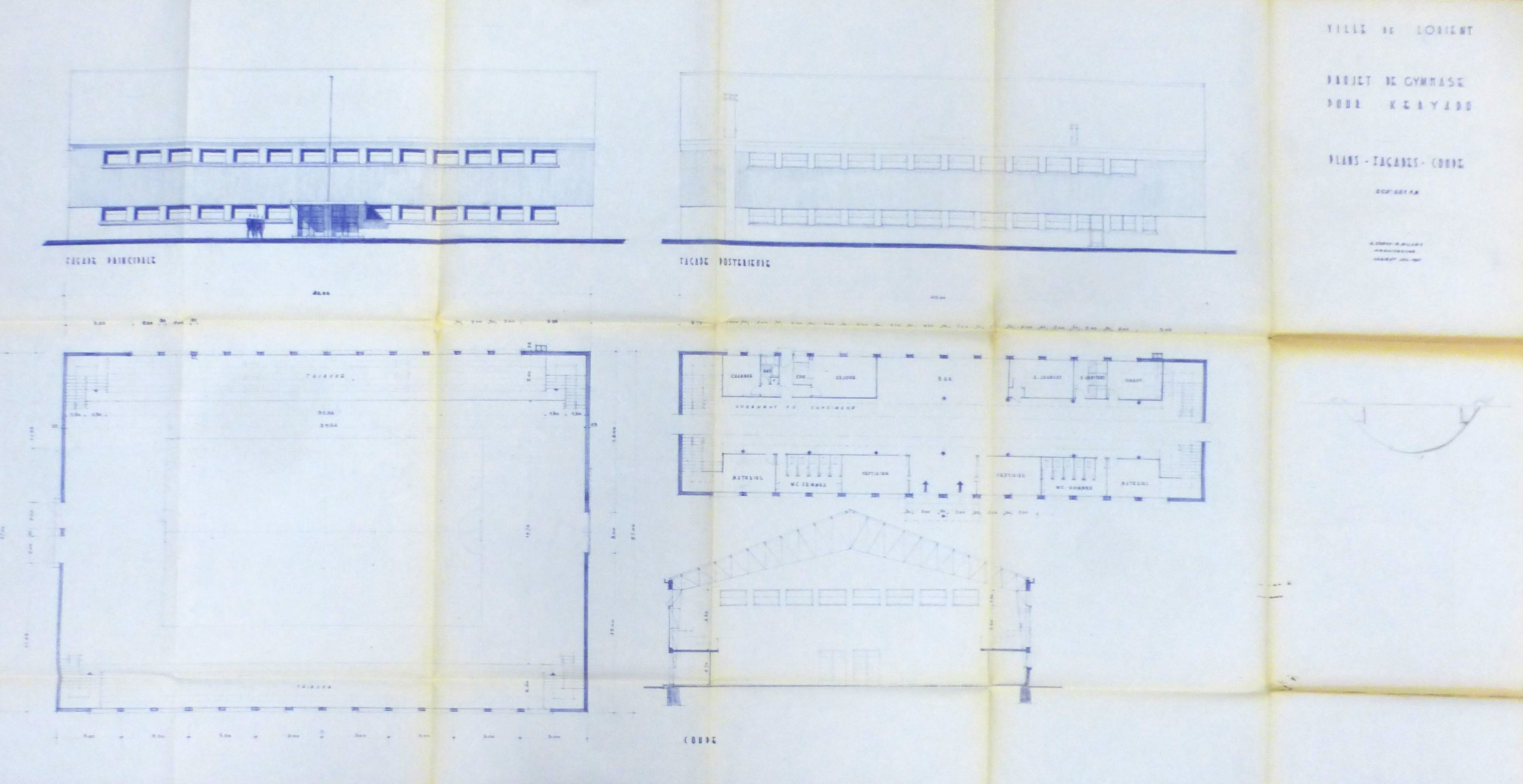 AC Lorient : 1 NC 1501. Plans, façades, coupe. H. Conan & R. Millot, 1962.
