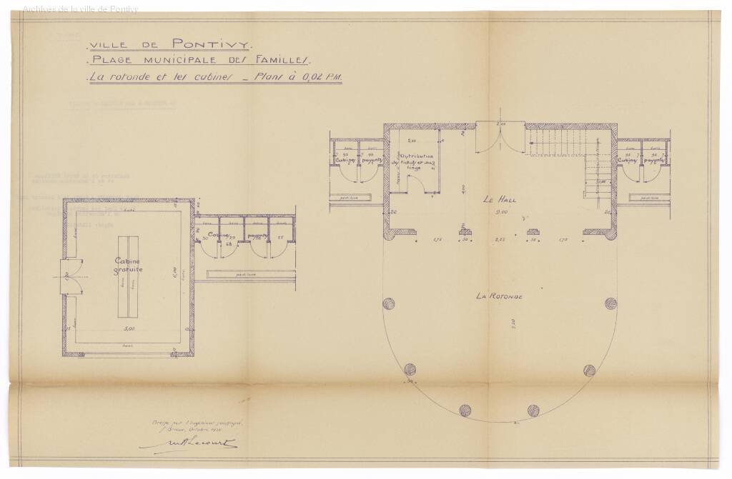 AC Pontivy : 4 M 113/6. La rotonde et les cabines : plans. Lecourt, 1935.