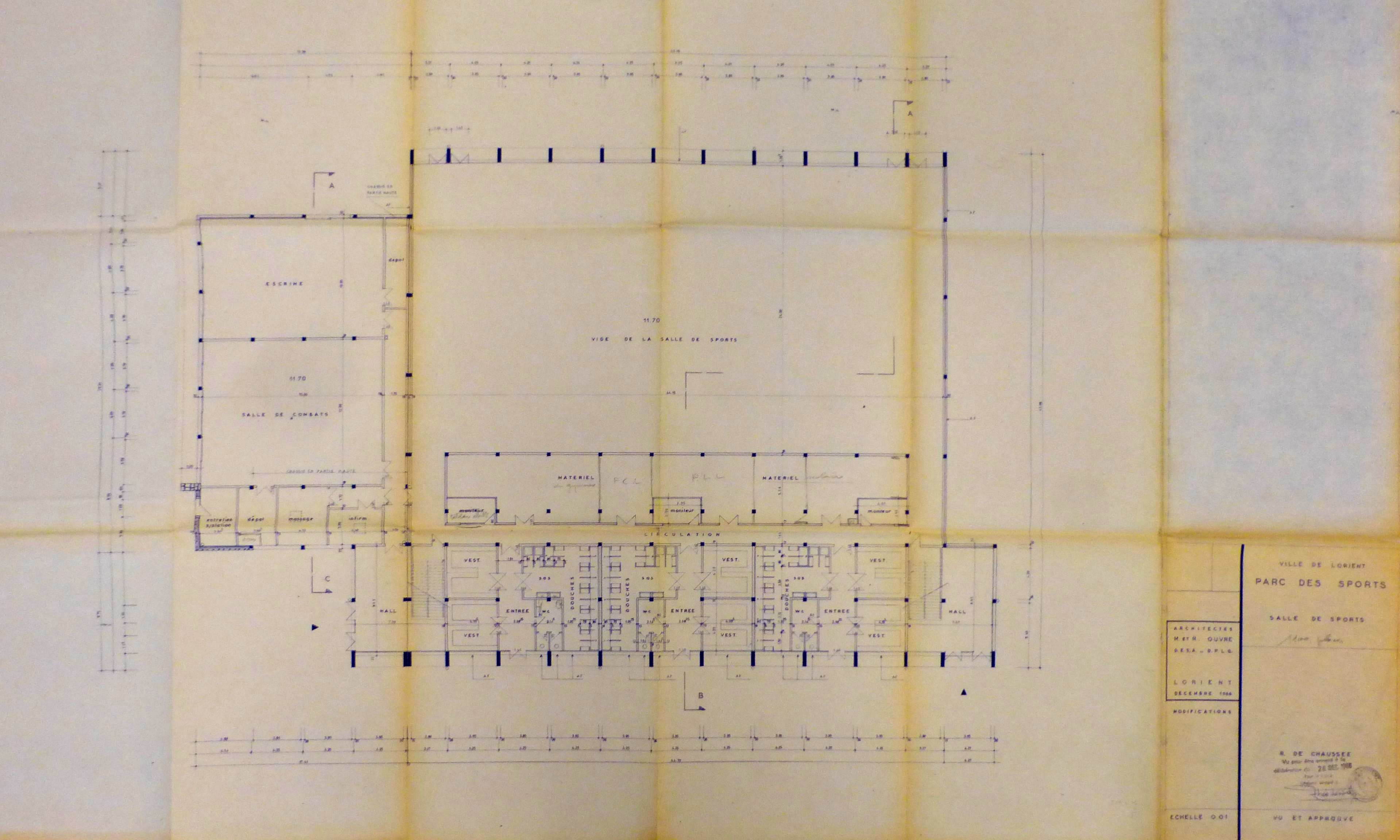 AC Lorient : 1 NC 1461. Plan du rez-de-chaussée. M. & R. Ouvré, 1966.
