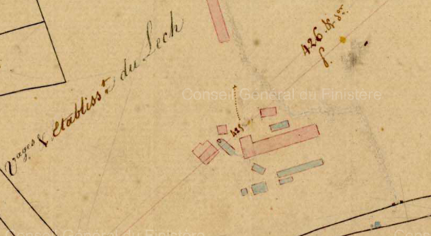 Blanchisserie du Leck en 1827. Extrait du cadastre ancien, section B unique du Leck (A.D. 29, série 3 P 104)Immatriculation