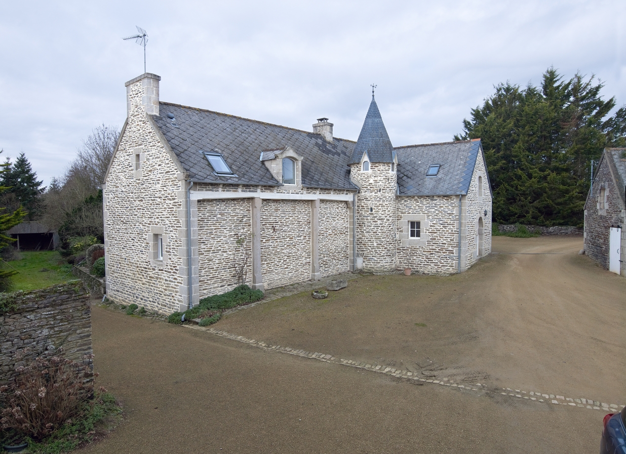 Minihy-Tréguier, Crec'h an Goué : grange-remise à deux piliers monolithes en granite, avec logements attenant et tour pigeonnier couverte en poivrièreImmatriculation