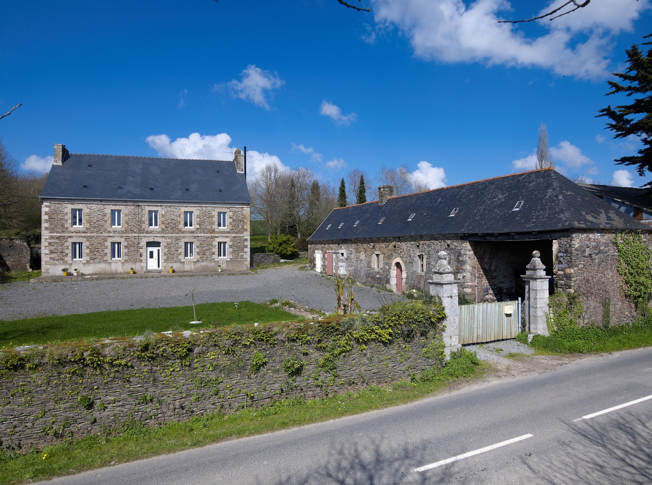 Langoat : ferme de Kermenguy. Le logis est daté 1836 (date portée). Les grandes étables à chevaux et à vaches sont construites perpendiculairement au logis, de part et d’autre de la courImmatriculation
