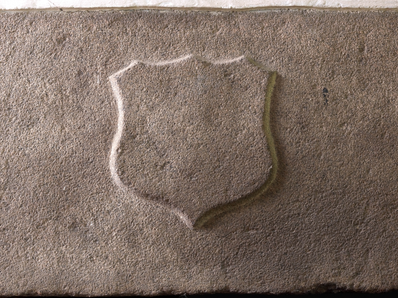 Minihy-Tréguier : manoir de Traou Martin, rez-de-chaussée, cheminée, détail des armoiriesImmatriculation