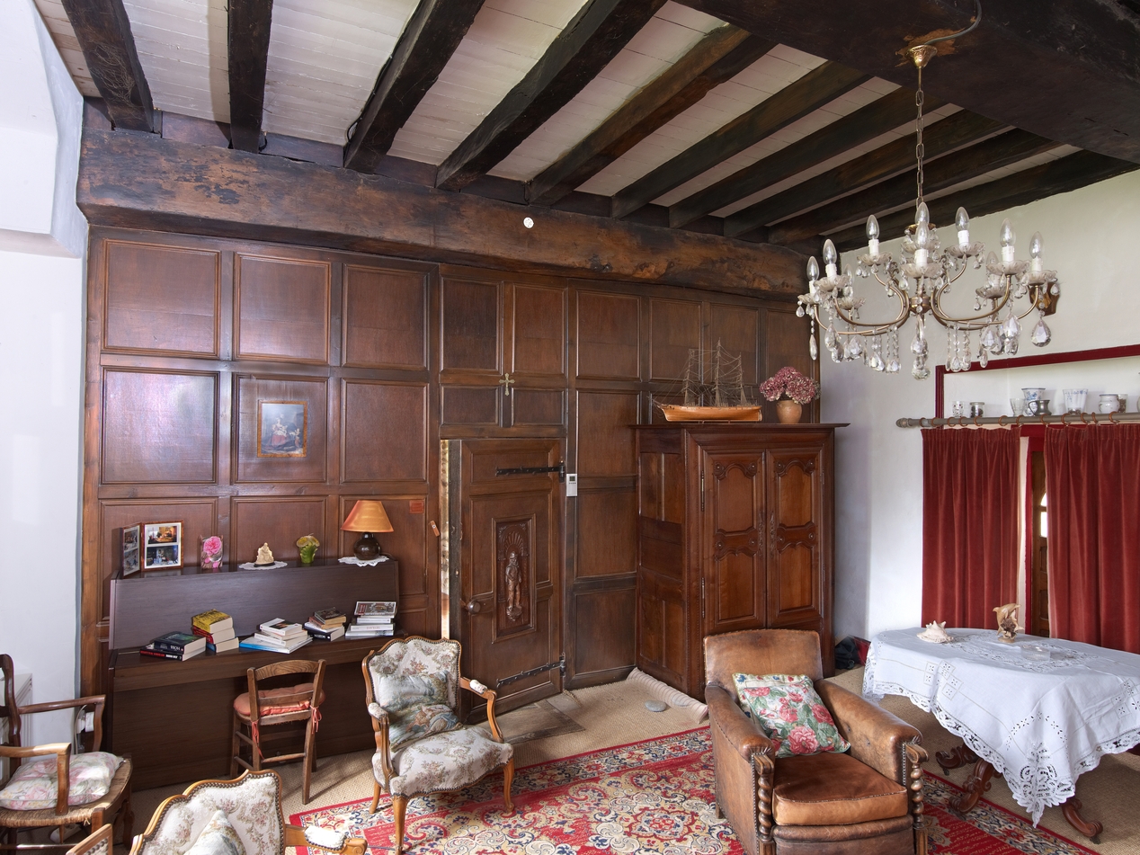 Minihy-Tréguier : manoir de Traou Martin, rez-de-chaussée, vue générale de la cloison en boisImmatriculation