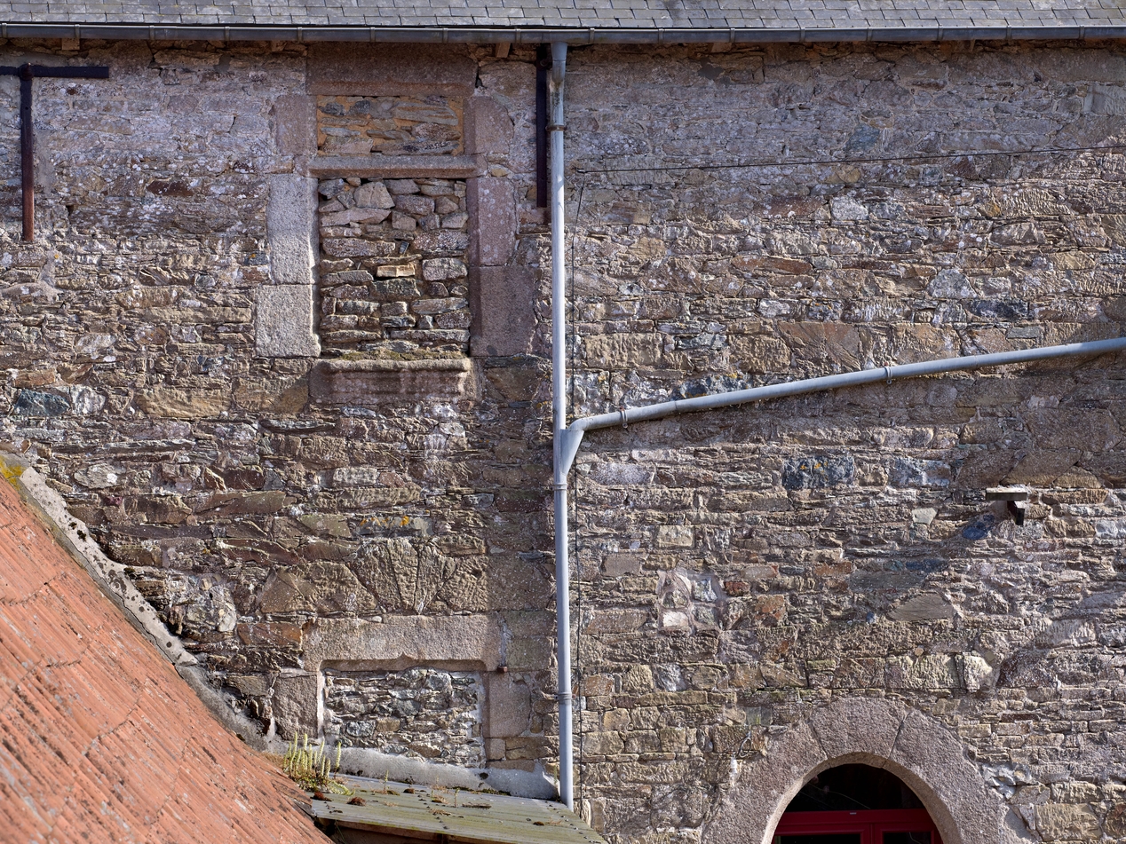 Minihy-Tréguier : manoir de Traou Martin, partie est, élévation nord, détail des fenêtres murées du rez-de-chaussée et du premier étageImmatriculation