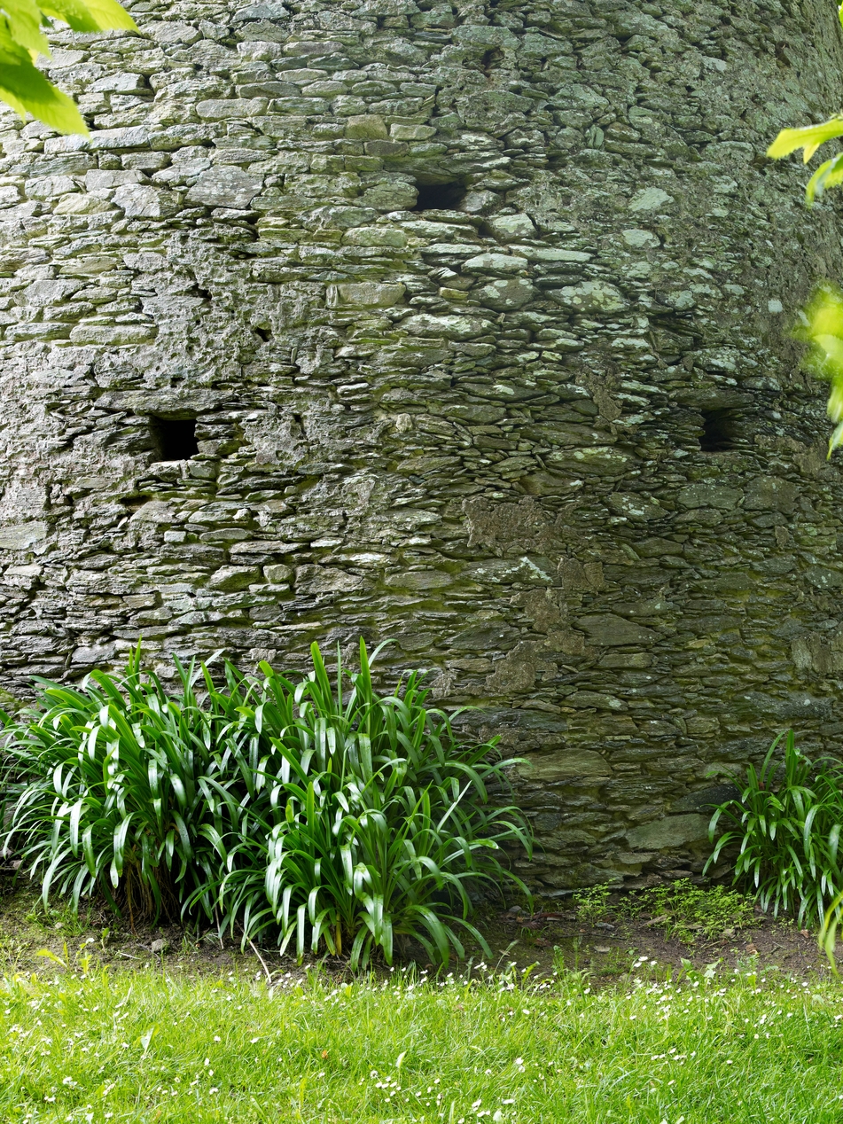 Colombier de la Chapellenie, élévation sud, détail de trous de boulin (hypothèse : le "boulin" est une traverse qui porte les plancher de l'échafaudage...)Immatriculation