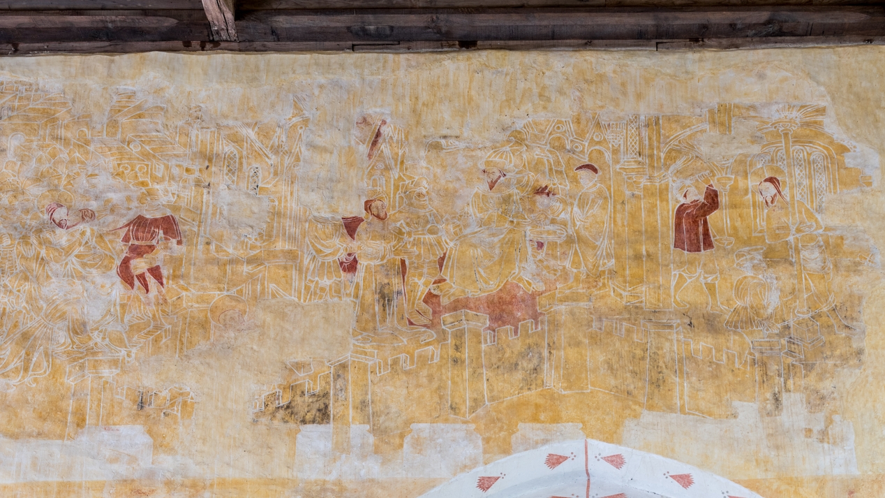 Peintures murales du XVe siècle. L'arrestation, le Christ devant Pilate et la Flagellation.Immatriculation