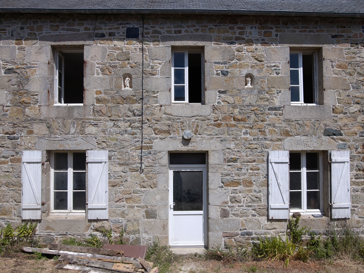 Minihy-Tréguier, 9 rue du Bourg : logis principal, détail de l'élévation sud, porte axiale (millésime "1737") encadrées de fenêtresImmatriculation