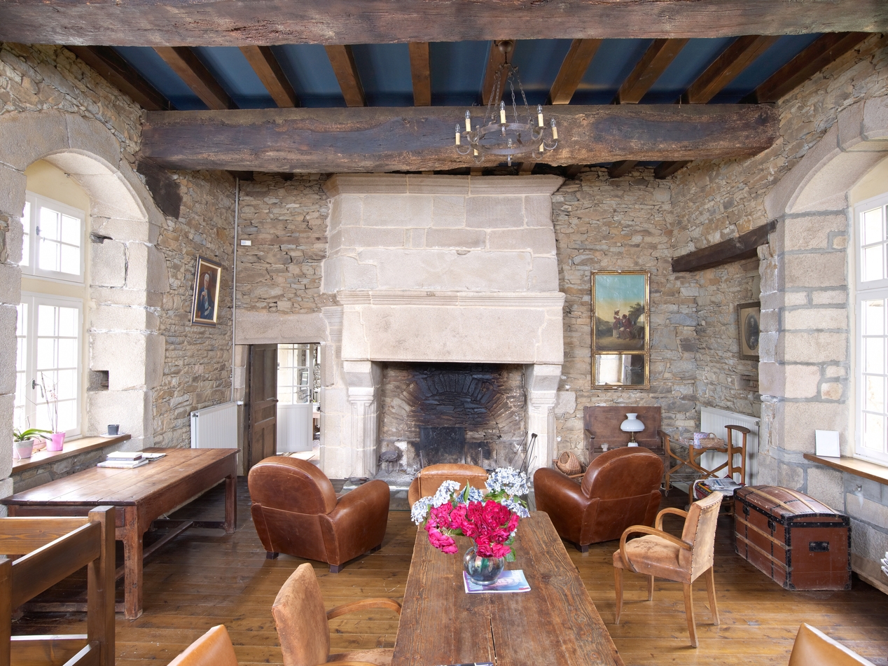 Salle basse (en position centrale), cheminée et porte donnant sur la salle basse est. A droite, dans l'épaisseur du mur, emplacement pour un meuble ou un lit-closImmatriculation