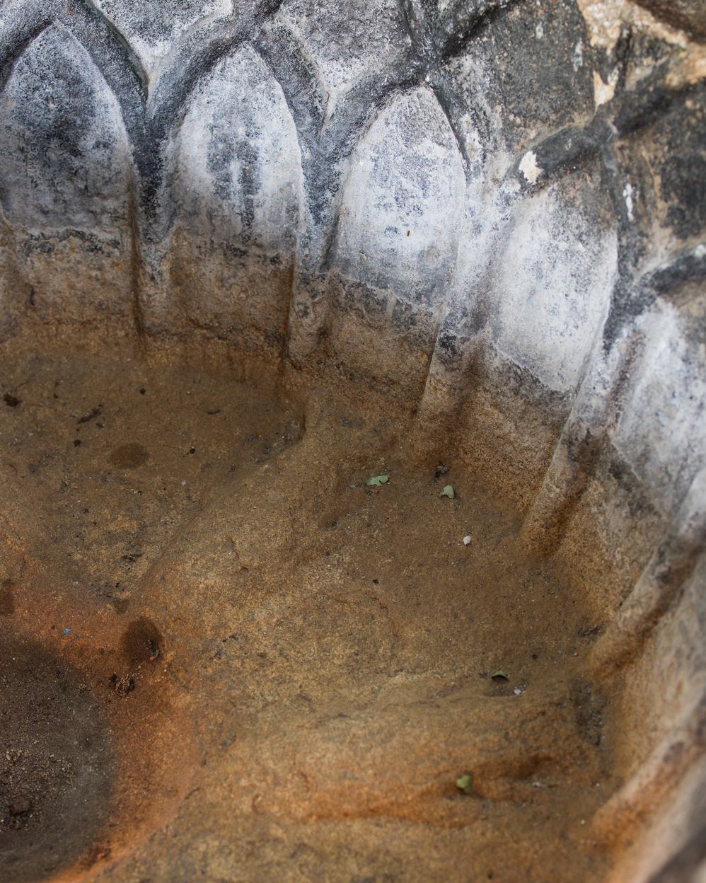 Fonts baptismaux: détail des poissons sculptés dans la cuveImmatriculation