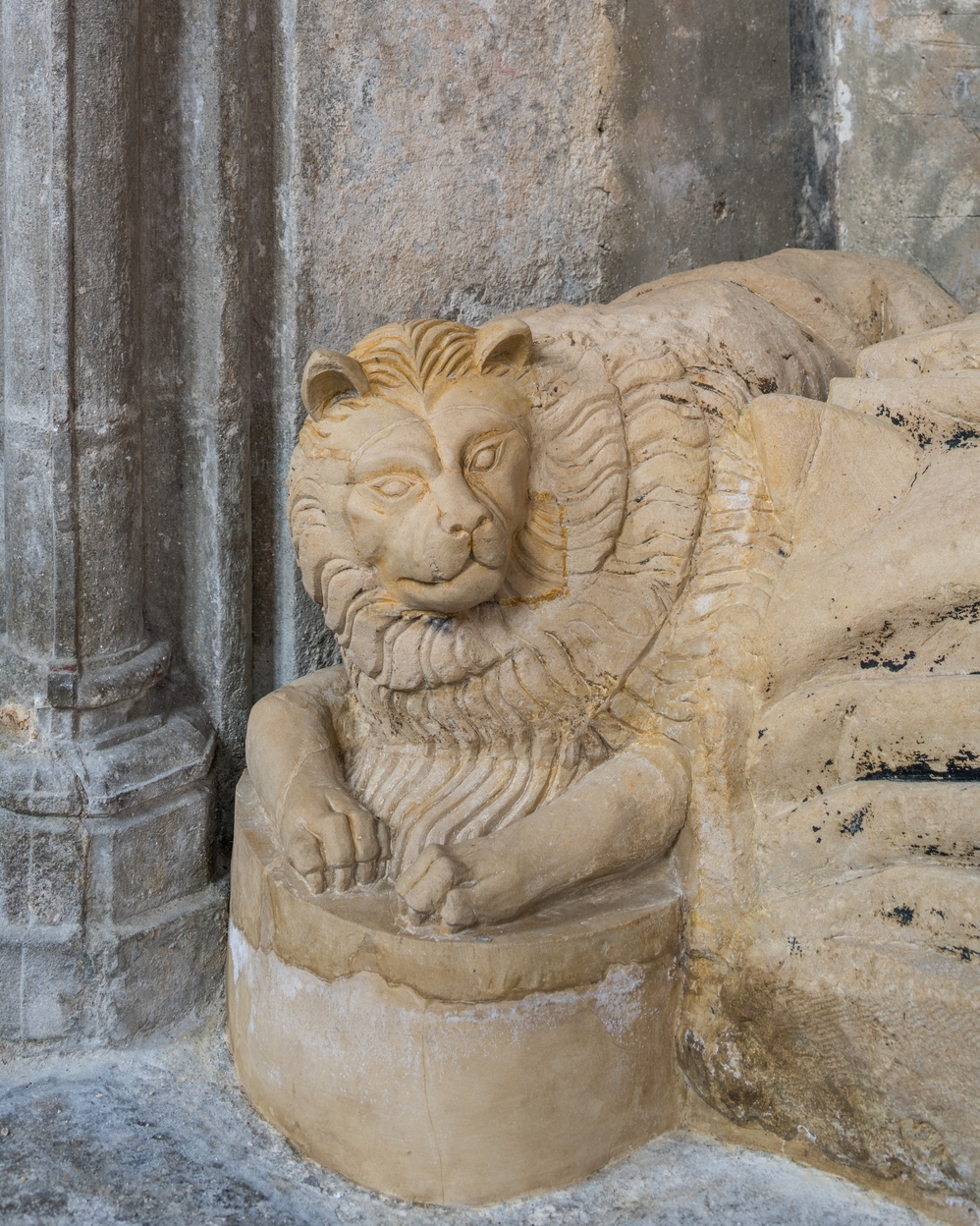 Détail du lion aux pieds de la sépulture d'une femmeImmatriculation