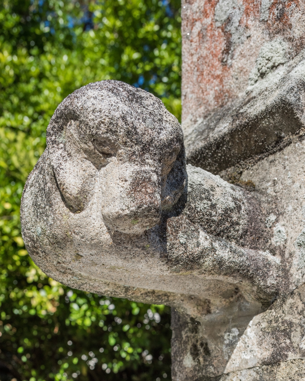 Détail d'une culée de contrefort avec une tête de chienImmatriculation
