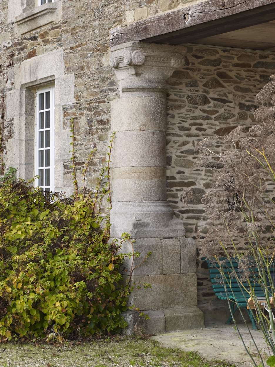 Aile nord en retour d'équerre, élévation est, galerie servant de remise, détail de l'une des colonnes aux chapiteaux sculptésImmatriculation