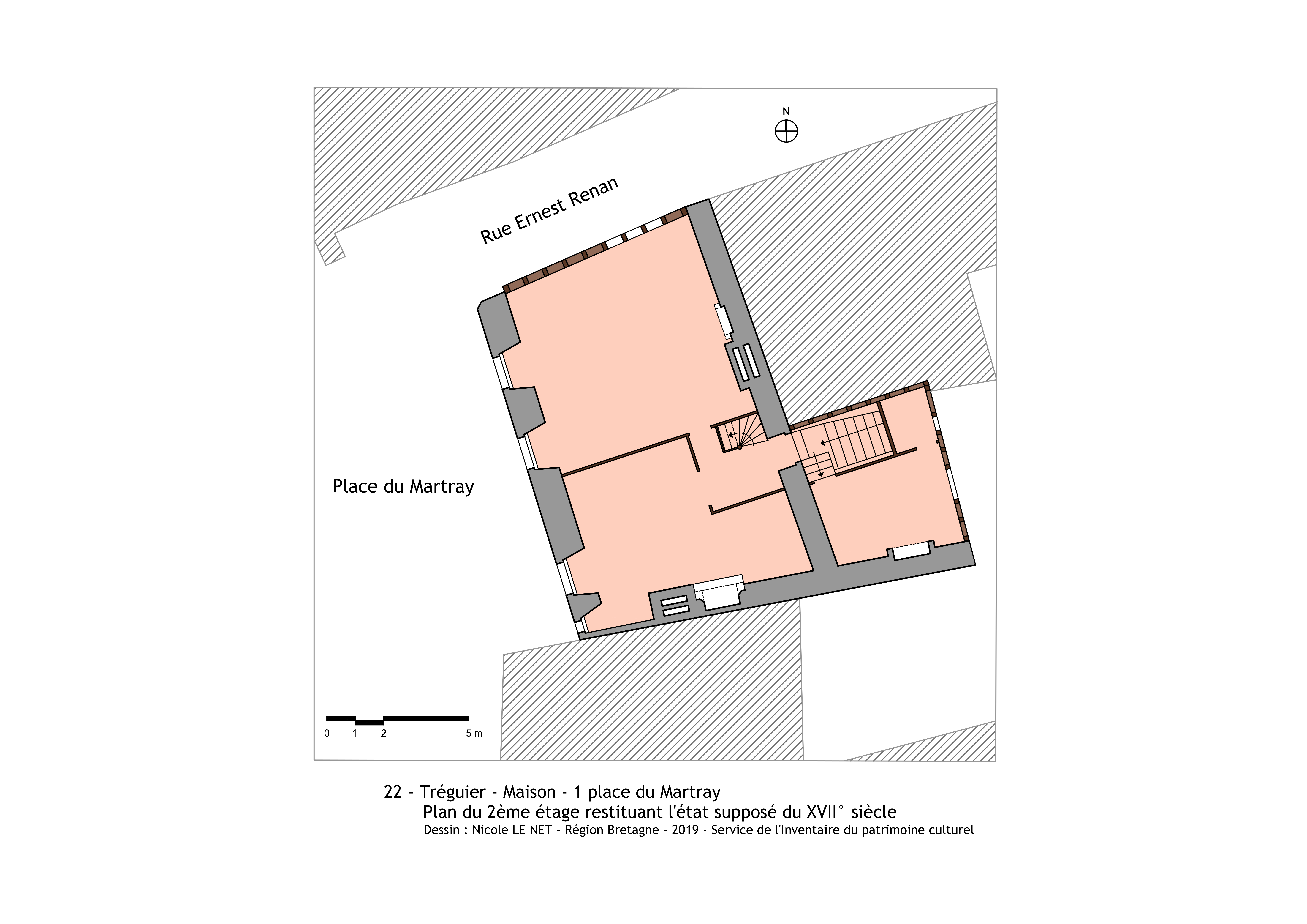 Plan du 2e étage restituant le cloisonnement intérieur supposé du 17e siècleImmatriculation