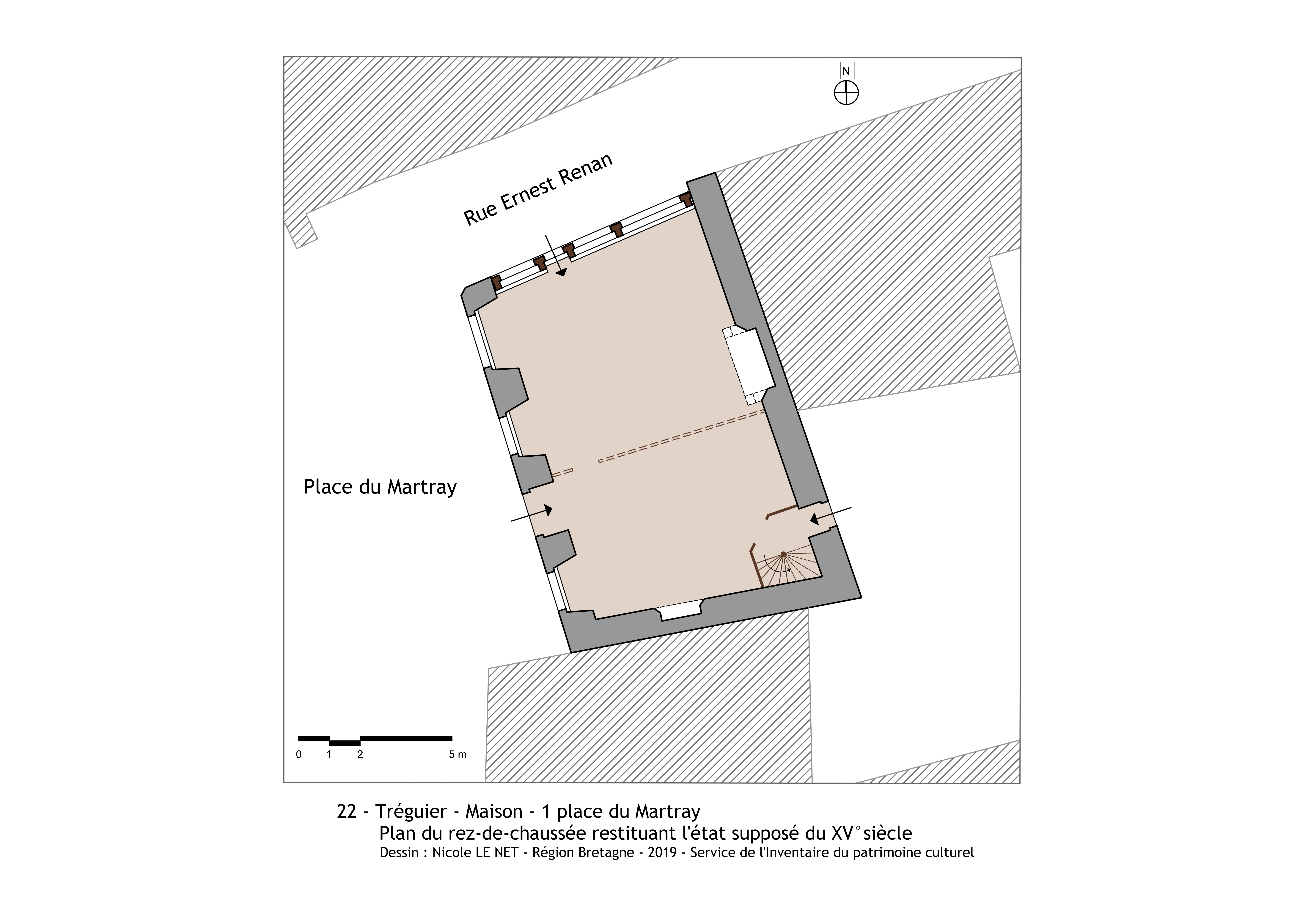 Plan du rez-de-chaussée restituant l'état supposé de la fin du 15e siècle. Deuxième hypothèseImmatriculation