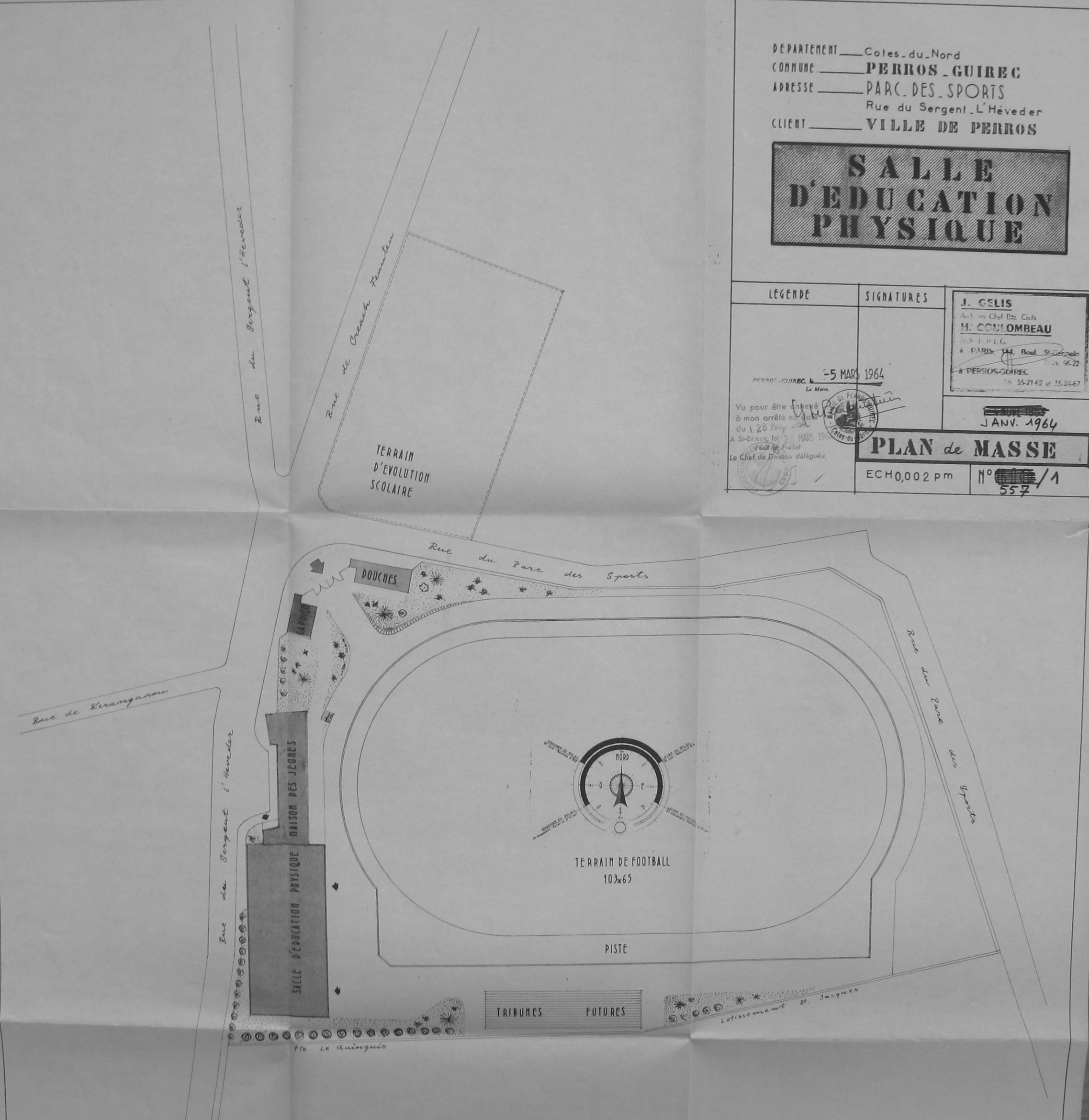 AD Côtes-d'Armor : 1126 W 28. Plan de masse. J. Gélis & H. Coulombeau, 1964.