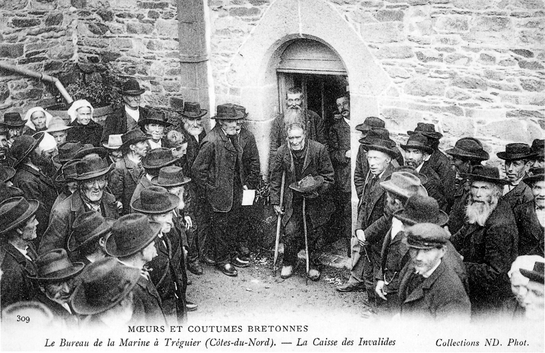 "Le Bureau de la Marine à Tréguier (Côtes du Nord), La Caisse des Invalides", carte postale (collection réunie par Michel Le Hénaff)Immatriculation