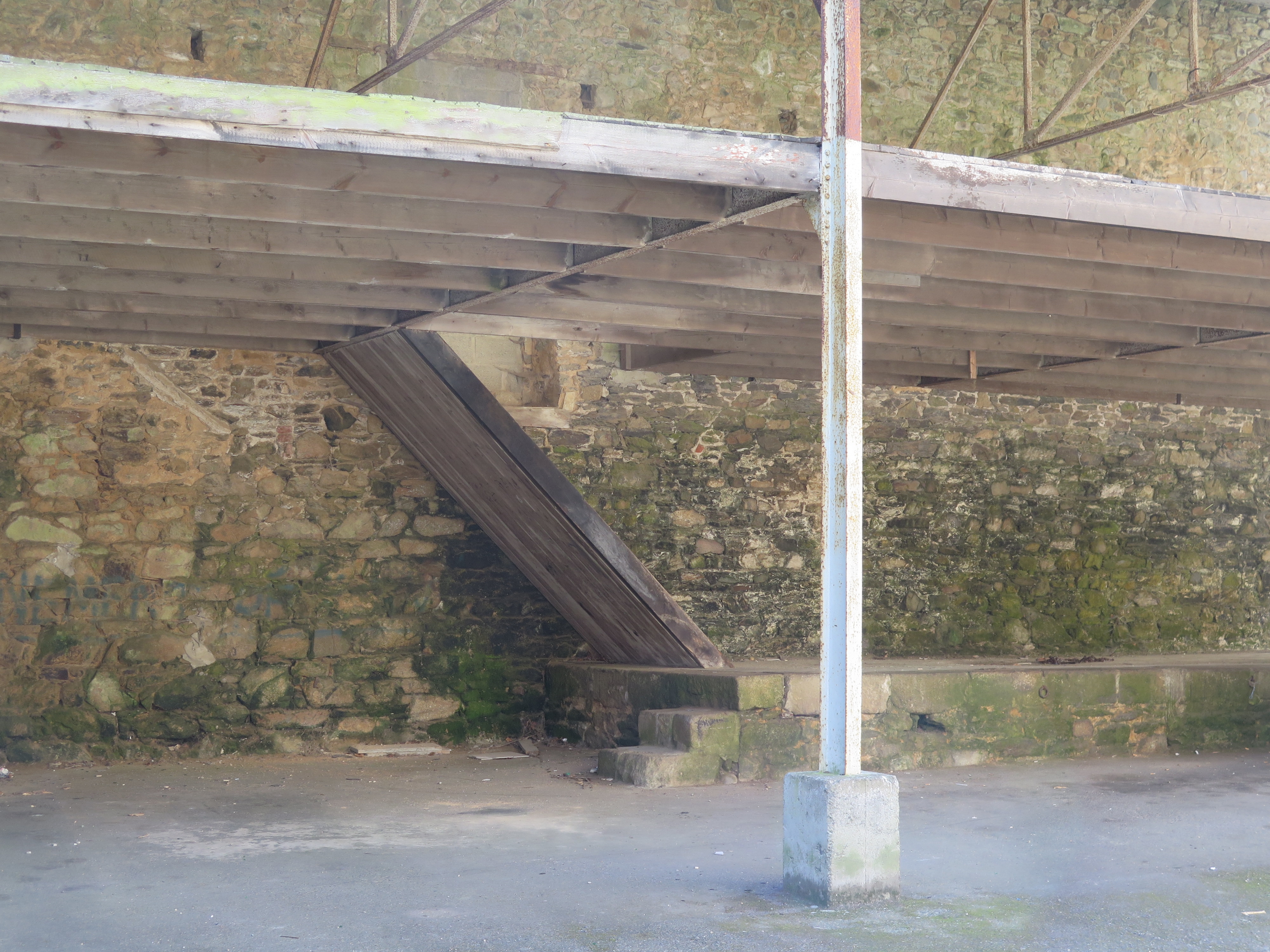 Tréguier, 9 rue des Perdreries (Perderies) : maison dite "Scolasticat", détail du hangar et du quai de chargement, état en 2017Immatriculation