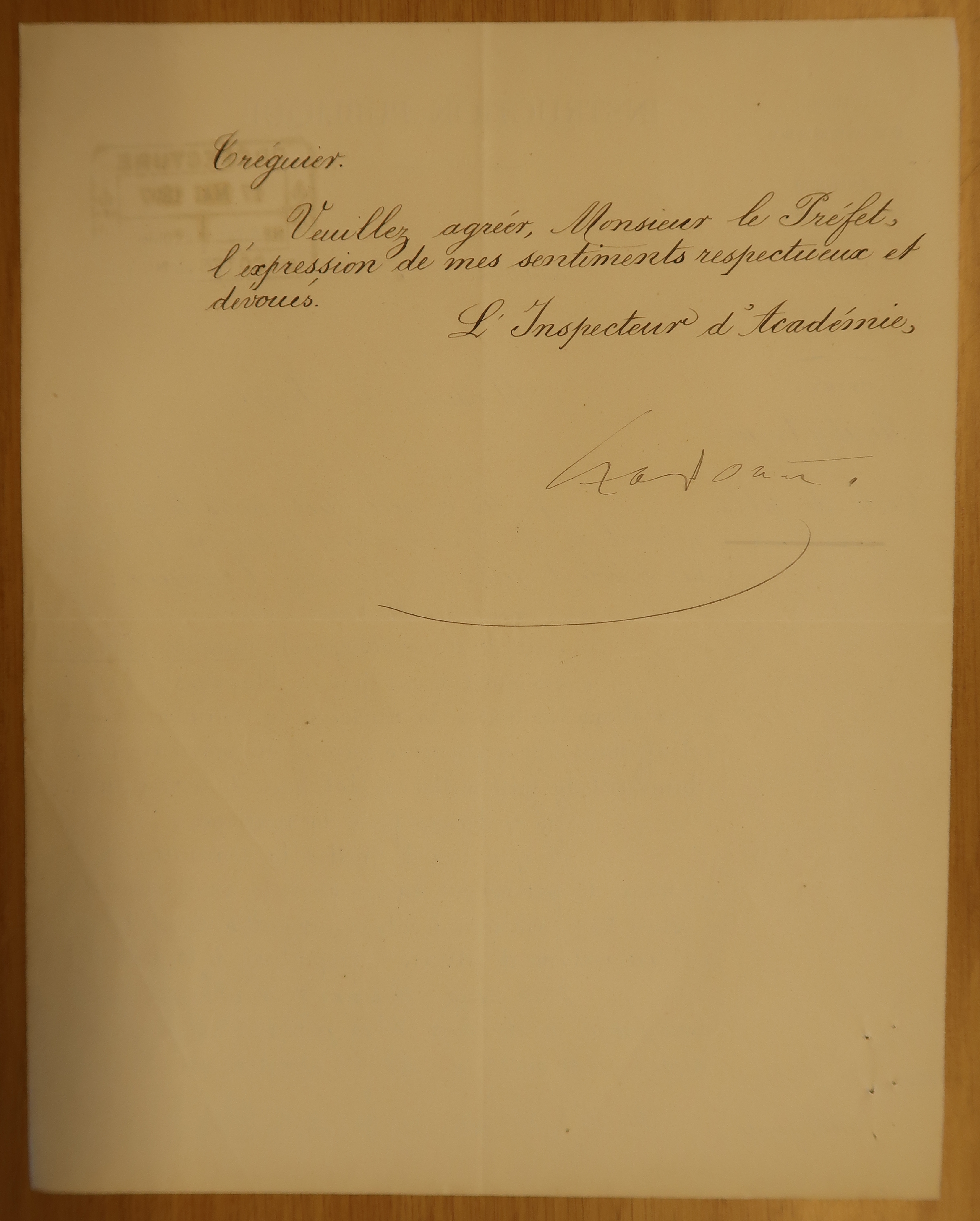Reproduction d'un courrier de l'inspecteur d'académie des Côtes-du-Nord au préfet décrivant l'école des filles de Minihy-Tréguier, 17 mai 1897 (Archives départementales des Côtes-d’Armor : 1T186. Carte scolaire, Minihy-Tréguier, 1880-1925)Immatriculation