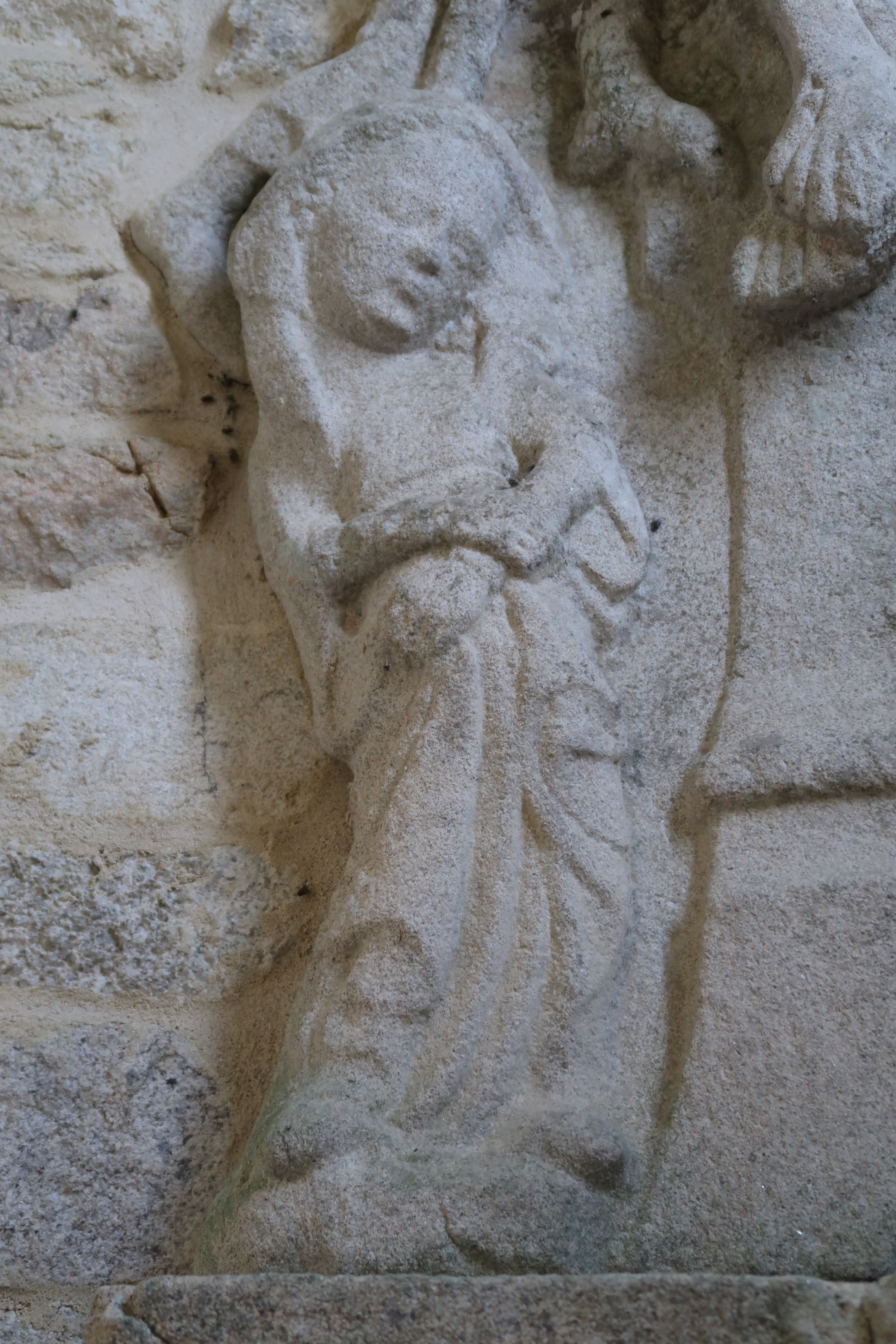 Clocher-porche, fragments d'un calvaire, détail sur la ViergeImmatriculation