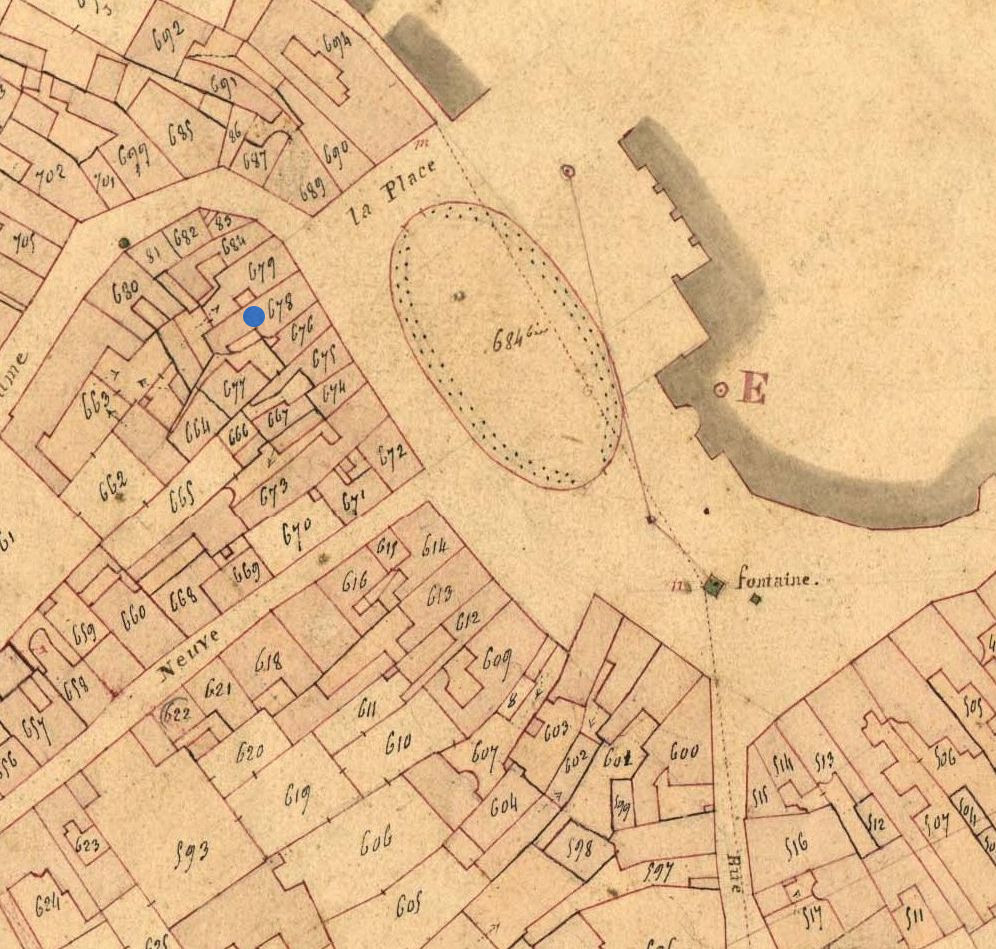Emplacement de la maison en 1834. Extrait du cadastre ancien, section A2 (A.D. 22, série 3 P 362)Immatriculation