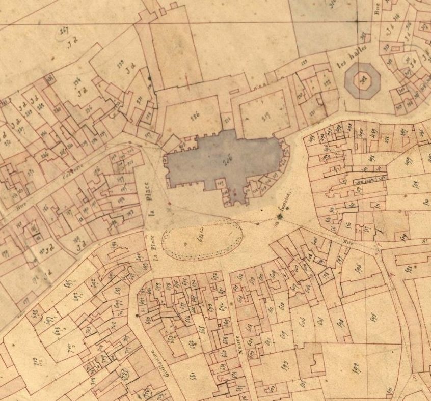 La place du Martray en 1834. Extraits du cadastre ancien, sections A1 et A2 fusionnées (A.D. 22, série 3 P 362/1-4)Immatriculation