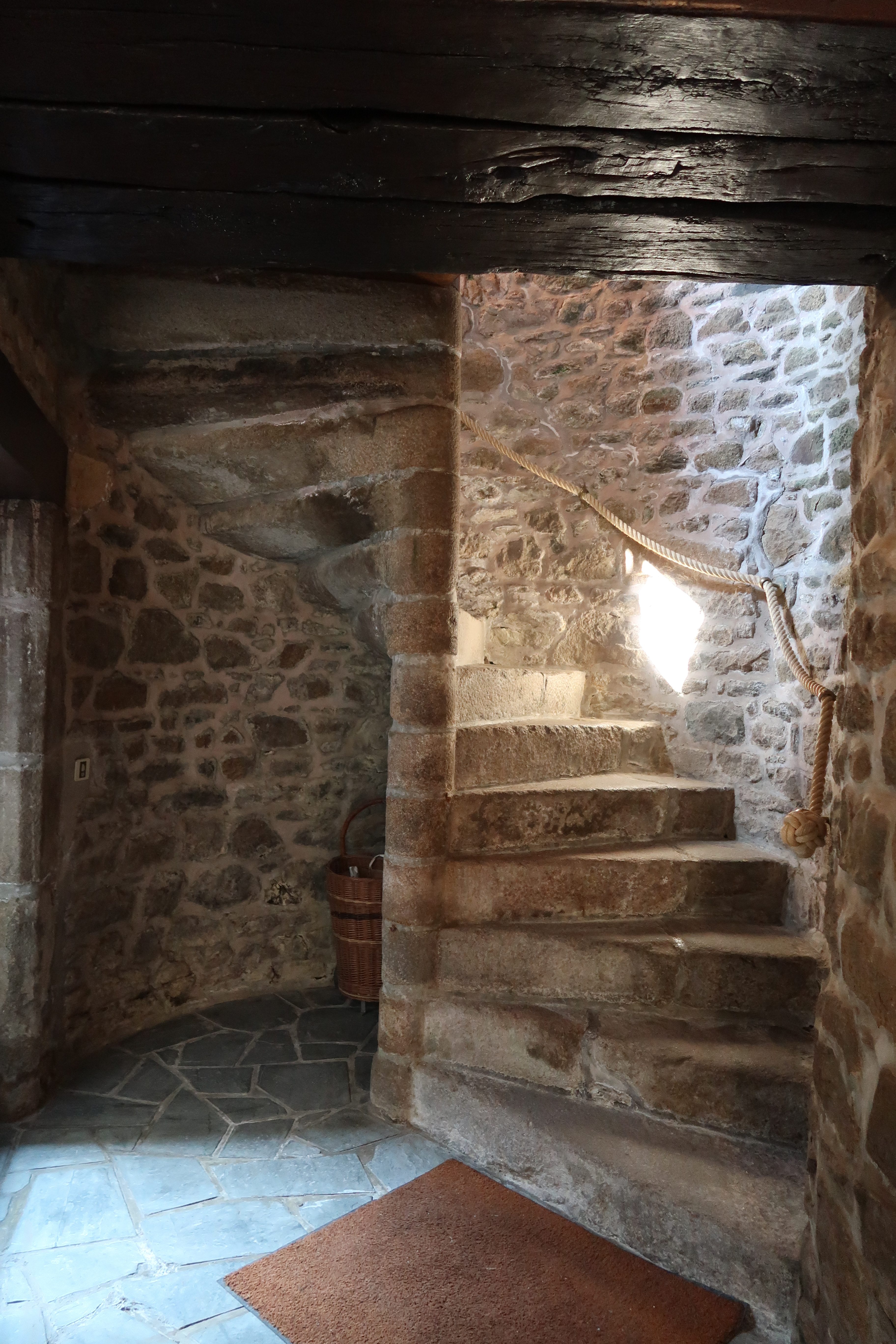 16 rue de La Chalotais. Maison construite en 1612 en milieu de parcelle. Détail de l'escalier en visImmatriculation