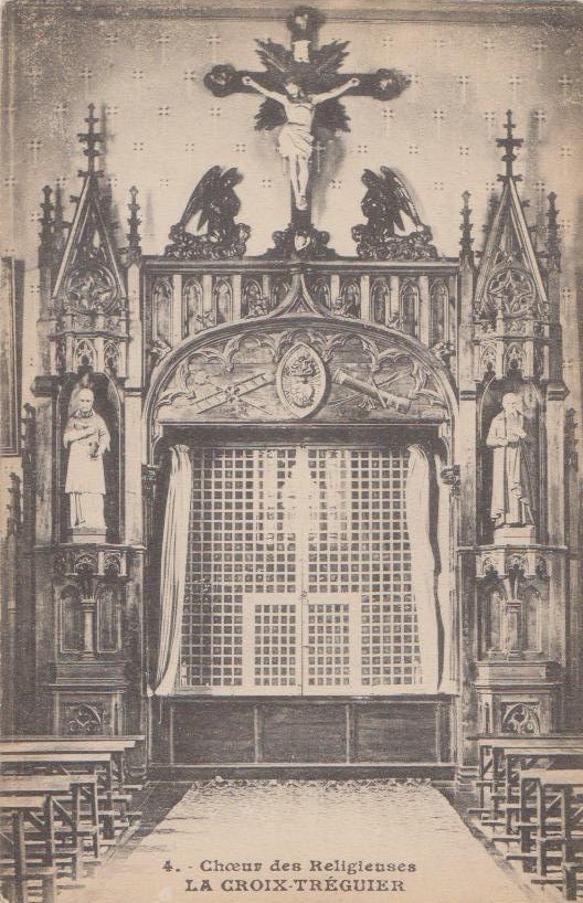 Avant-choeur des soeurs. Mur diaphragme et arcade avec sa grille en bois placée entre les religieuses et les fidèles. Photographie ancienne (collection particulière)Immatriculation