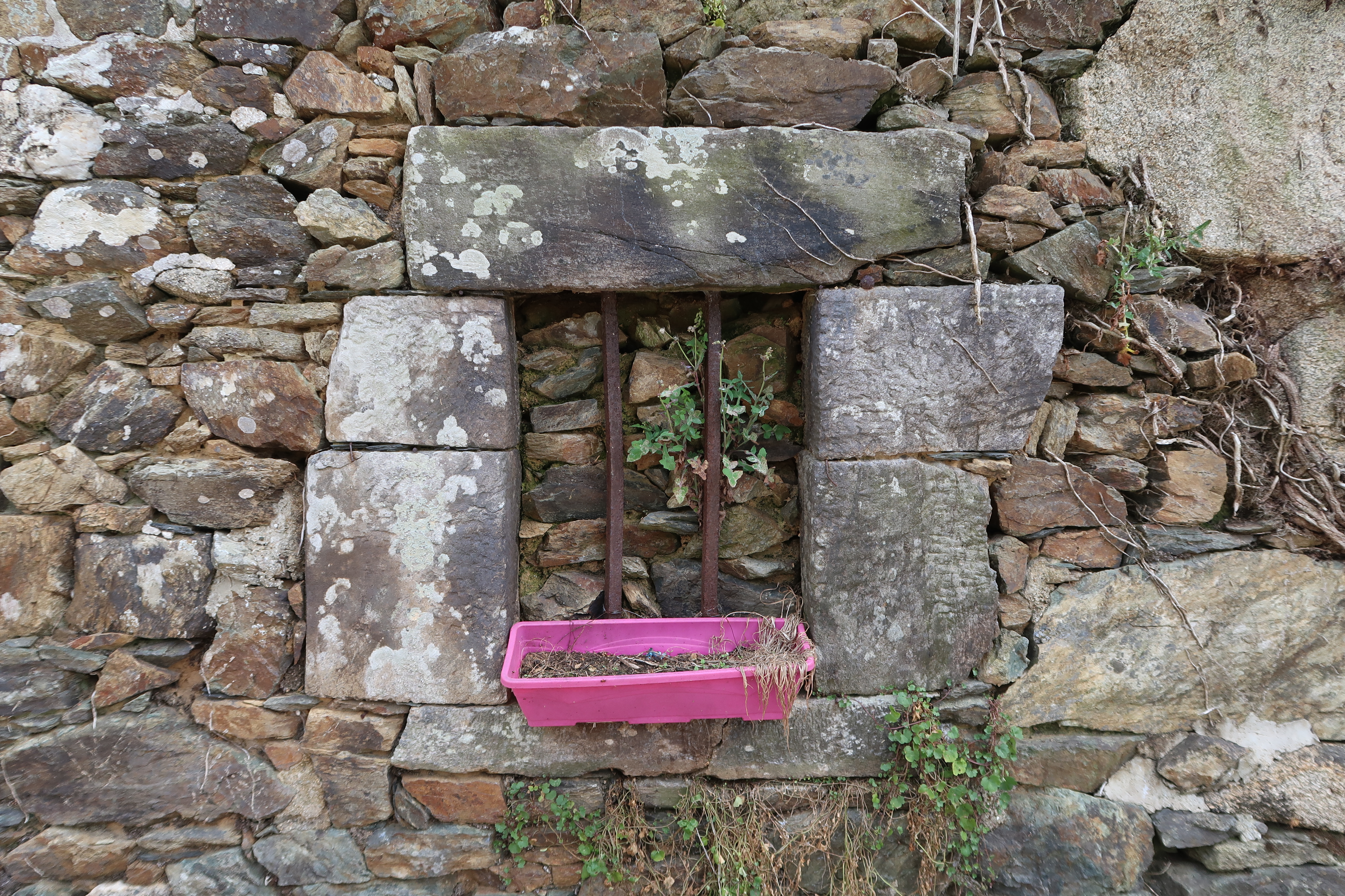 Minihy-Tréguier, le Merdy Bihan : ancien logis actuellement dépendance (désaffectée), détail de l'élévation ouest-sud-ouest, fenêtre muréeImmatriculation